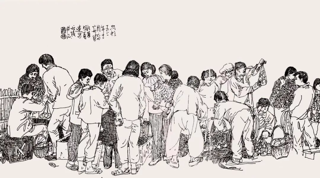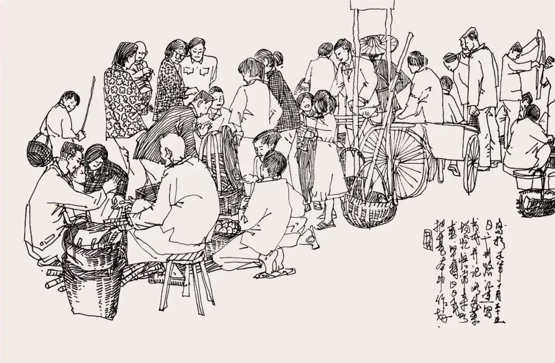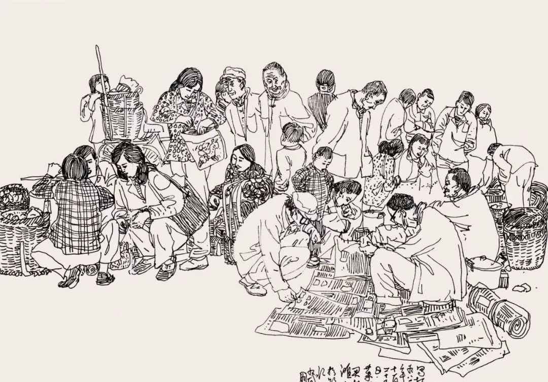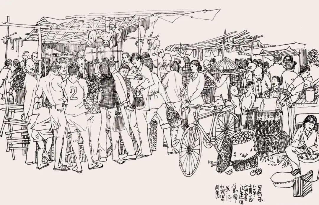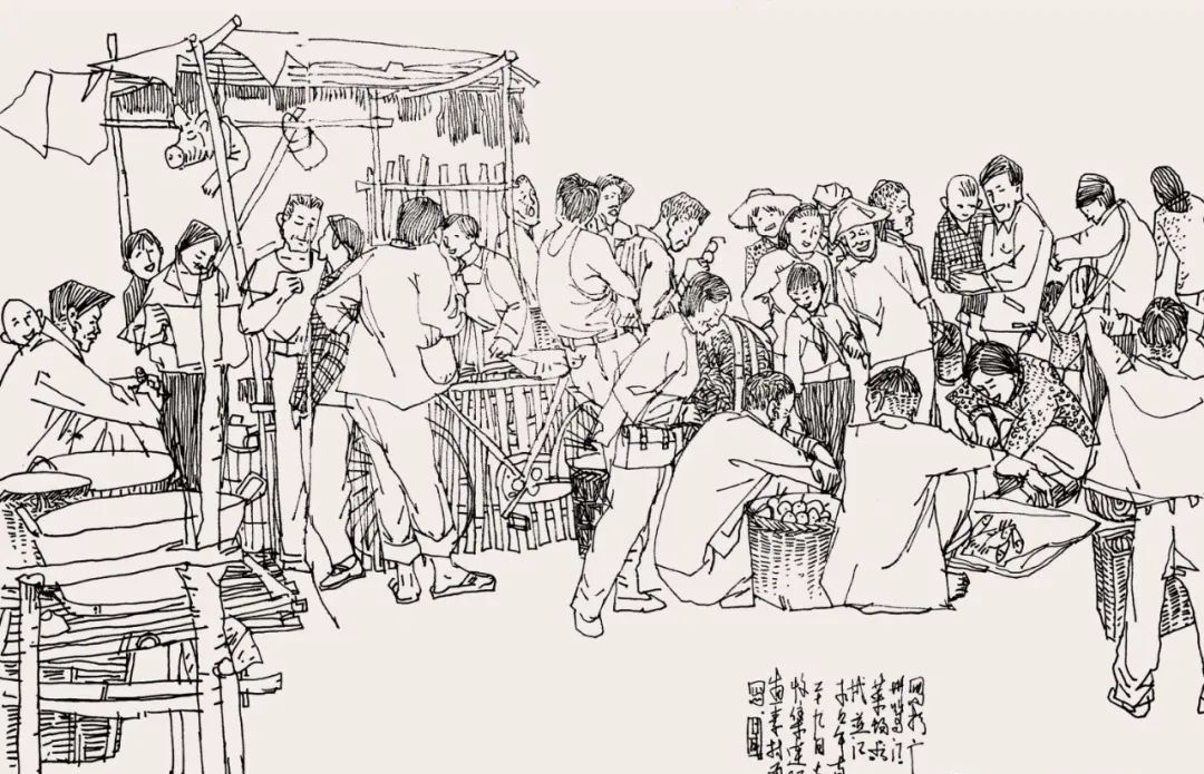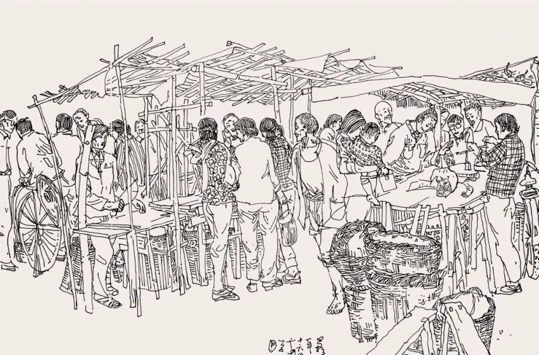 速写里的村镇、建筑、市场、人群都是我的创作素材,成了我的人生回忆,为我的绘画艺术作了沉淀。速写锻炼了我对于物体特征敏锐的捕捉能力,加强了我对事物的深刻认识。它的形状、它的特点、它的灵动都深深烙印在我的脑海里,深刻了我的绘画思维和对于绘画艺术的审美性。