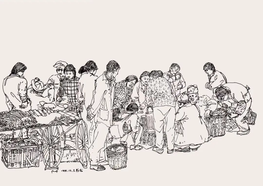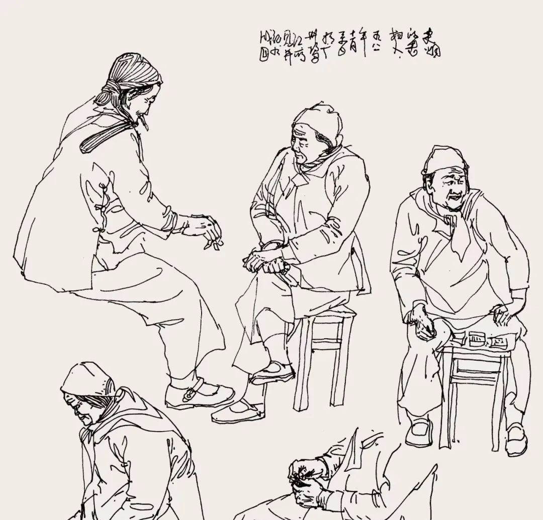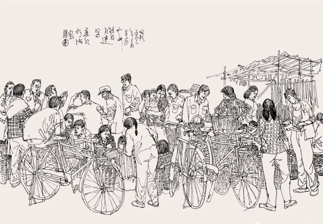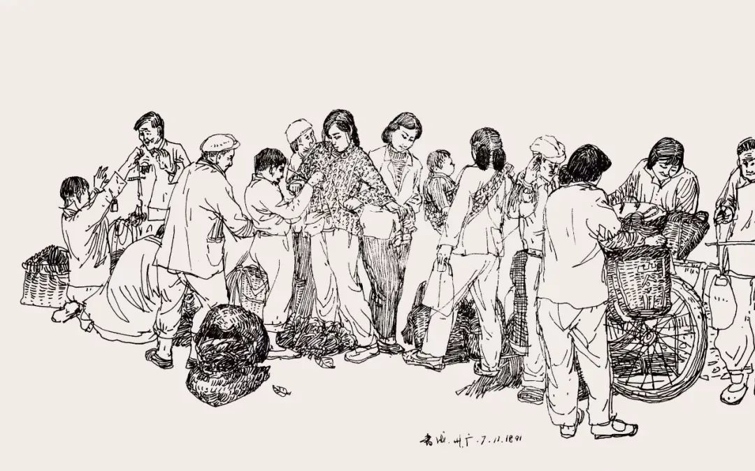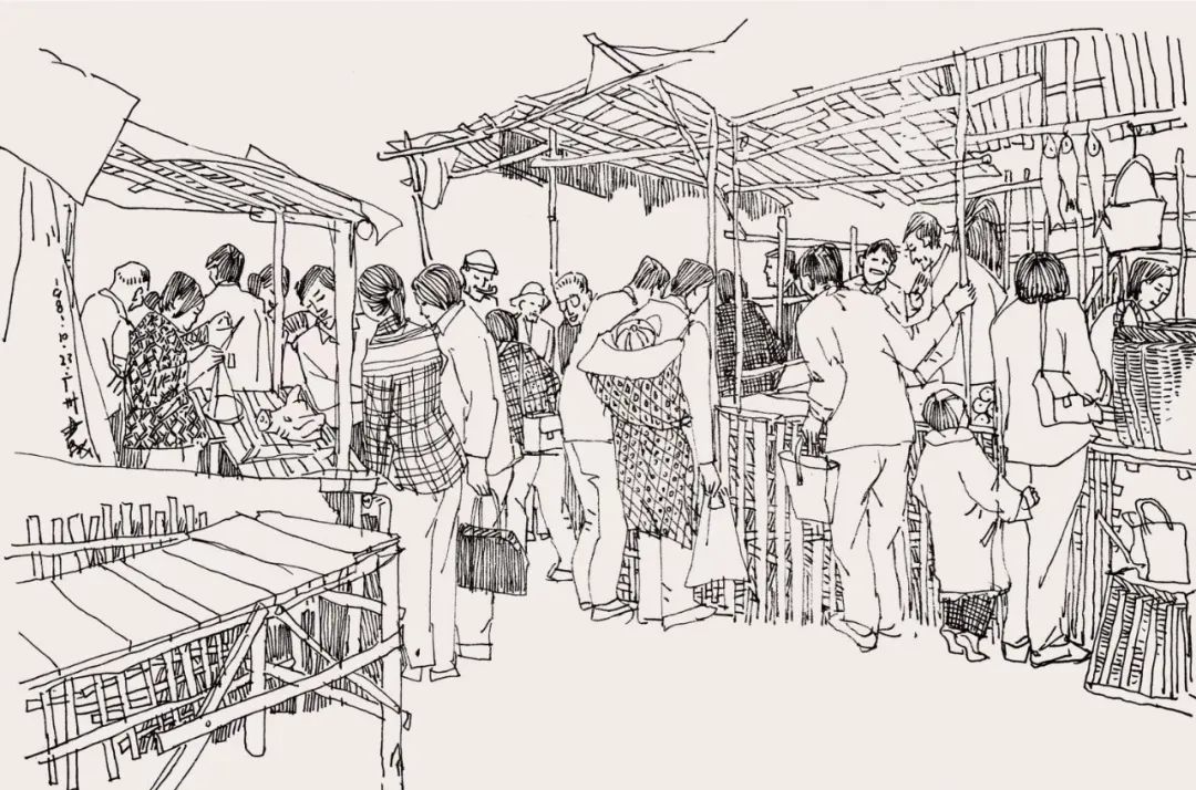 速写里的村镇、建筑、市场、人群都是我的创作素材,成了我的人生回忆,为我的绘画艺术作了沉淀。速写锻炼了我对于物体特征敏锐的捕捉能力,加强了我对事物的深刻认识。它的形状、它的特点、它的灵动都深深烙印在我的脑海里,深刻了我的绘画思维和对于绘画艺术的审美性。