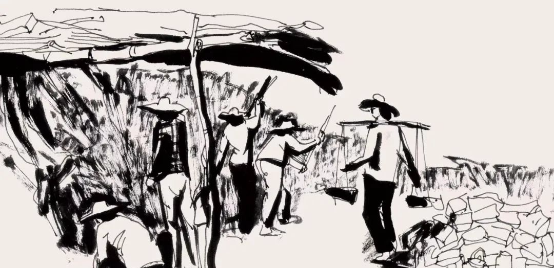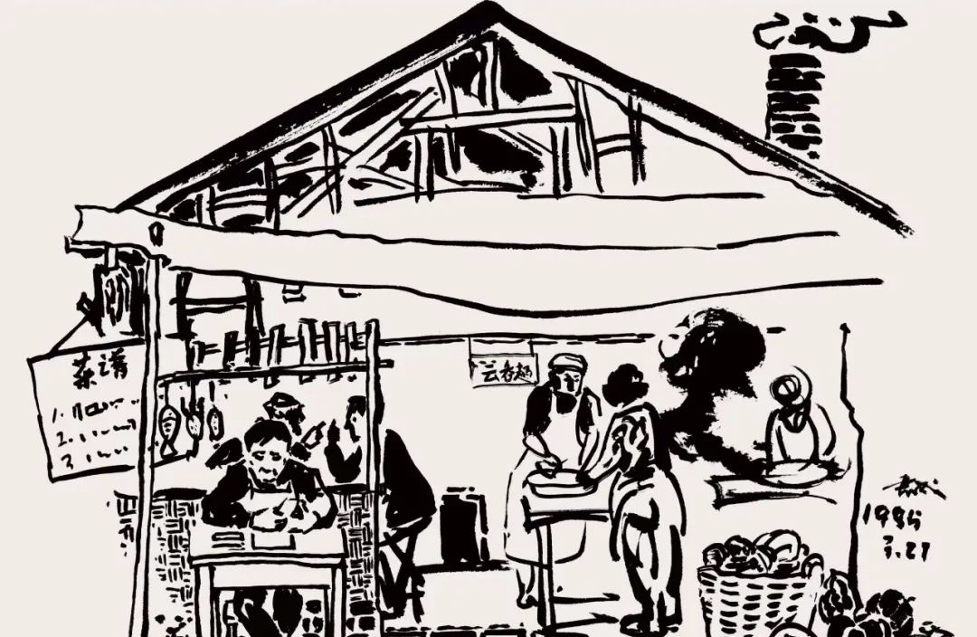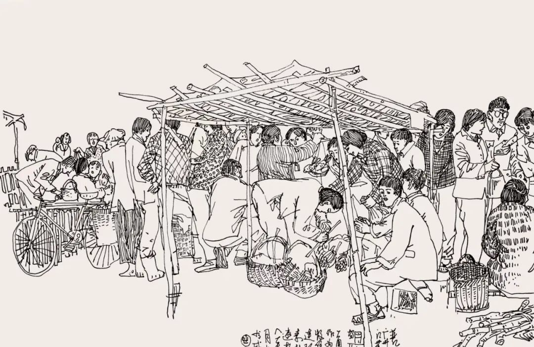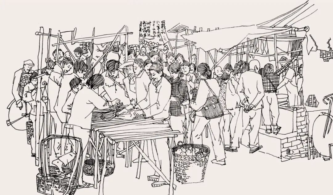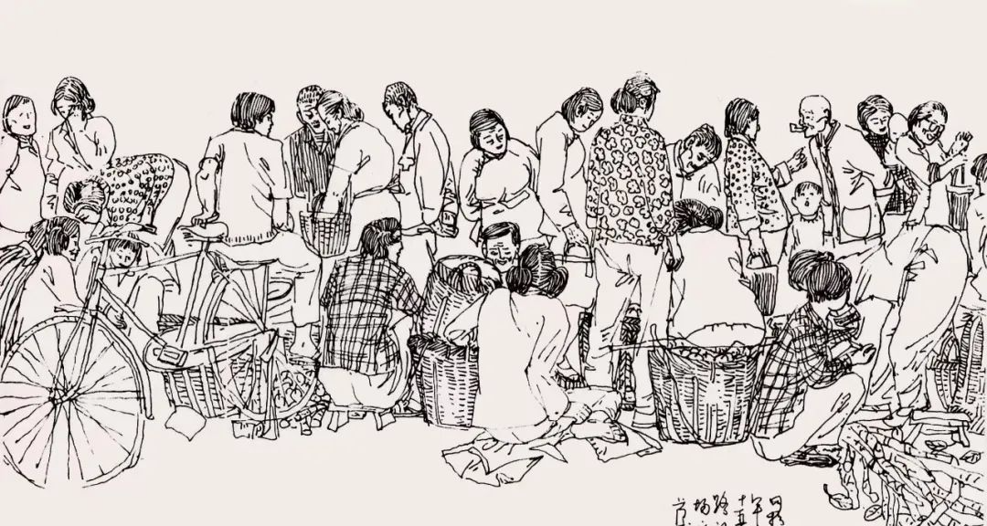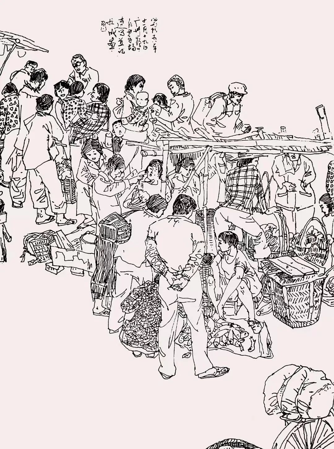 速写里的村镇、建筑、市场、人群都是我的创作素材,成了我的人生回忆,为我的绘画艺术作了沉淀。速写锻炼了我对于物体特征敏锐的捕捉能力,加强了我对事物的深刻认识。它的形状、它的特点、它的灵动都深深烙印在我的脑海里,深刻了我的绘画思维和对于绘画艺术的审美性。