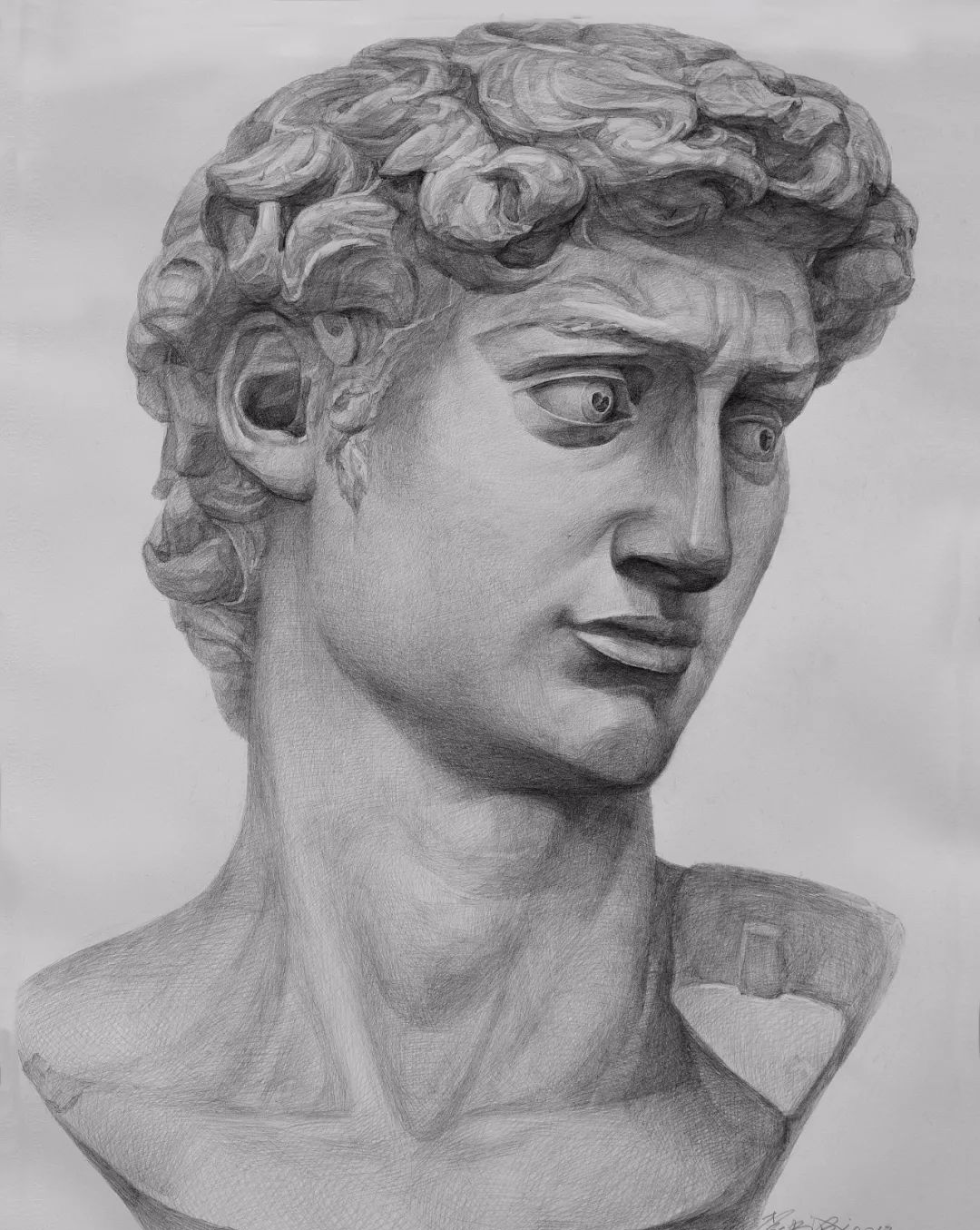速写的黑白灰也就是暗、亮、灰面的处理。黑在白的衬托下方能显示出它的精妙,白在黑的对照下才能体现价值。线描中密线在疏线中方能体现其重,疏线在密线相映下才有了精妙性。黑白之间的灰面,疏密线间的层次,最能显示内容性、审美性。