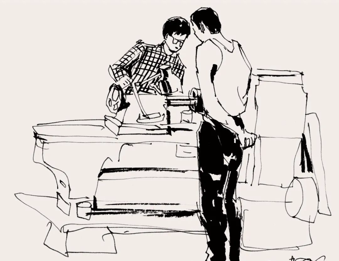 速写的取舍,在于对概括与具体的认识。“取舍”是衡量速写的关键所在。取舍的意义在于要表现什么,如何表现?意在笔先,就可以做到取舍有道;该取的认真捕捉描绘,该舍的简炼概括交代。有取舍方才能显示出特征性与重要性,方能得到画面的唿应和整体美感。