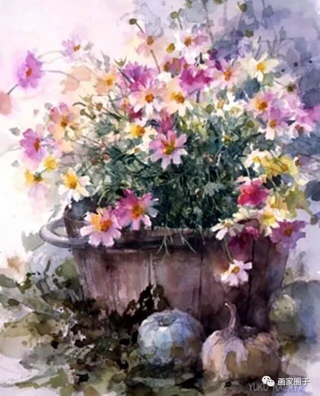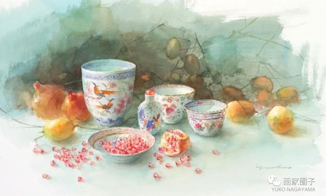 喜爱水彩的朋友,应该很少有不知道永山裕子的。她是日本最具代表性的水彩画家,自成一派,被称为永山流。她的作品色彩清淡,趋向于写实和写意之间,极富诗意,具有女性的浪漫、细腻,又不失整体感。