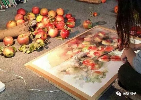 画水彩画的时候一定要注意水彩画的绘画步骤,很多初学者直接用水彩颜料画画是不对的,因为水彩画是水彩颜料和媒介水的结合使用,不加水或者加水量少,直接画画画面不透明,但是如果水份过量颜色也容易降低纯度变得“脏”,变得“灰”,失去了画面的色彩效果。正确的步骤应该是第一遍颜色少水份大,之后水份越来越少,颜色越来越多。