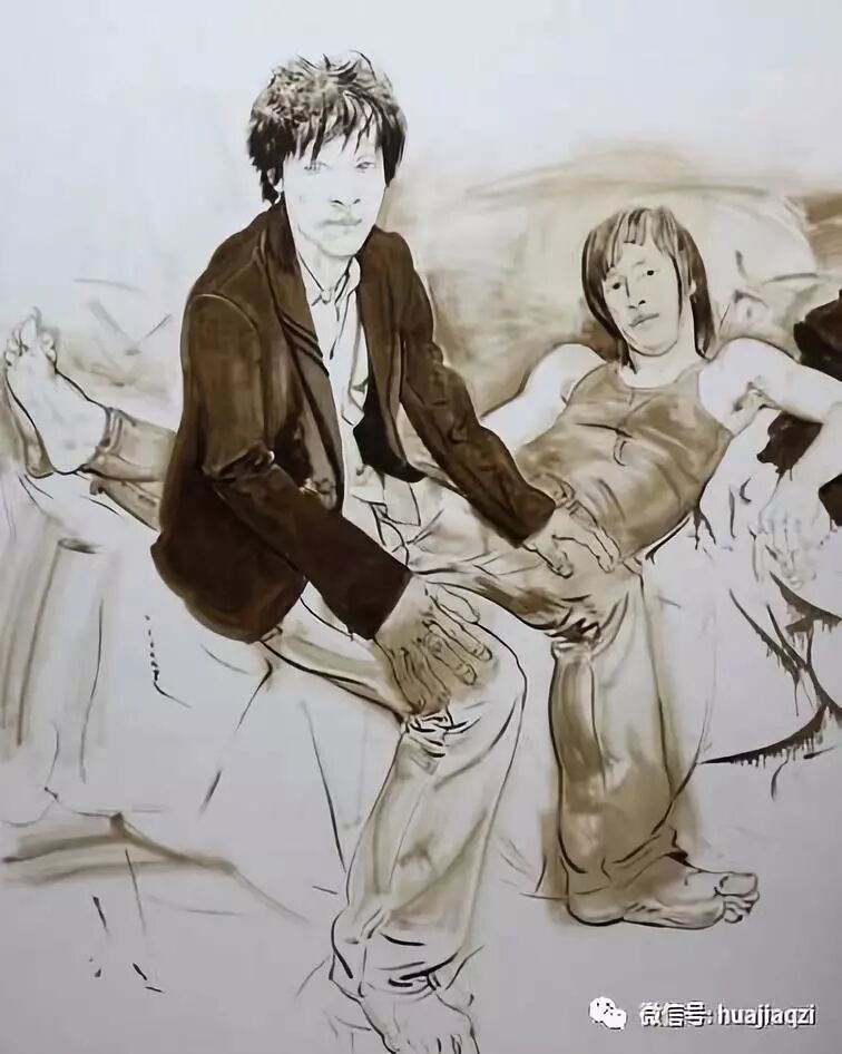 大小油画刷的使用油画刷使用在忻东旺的画面中运用最广 ,从起形到上完 最后几笔色彩 ,基本上都有刷子的痕迹 。用技法分别是线 、拍 、揉。