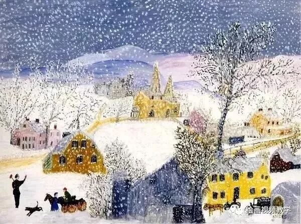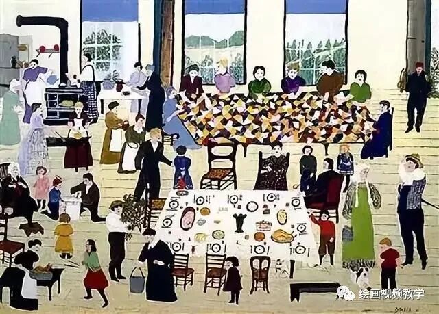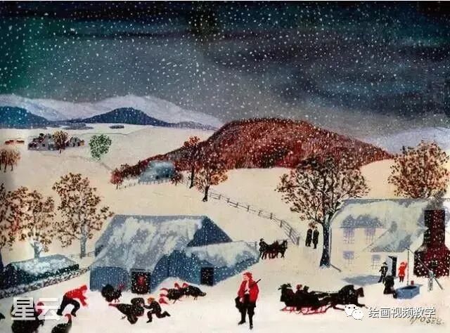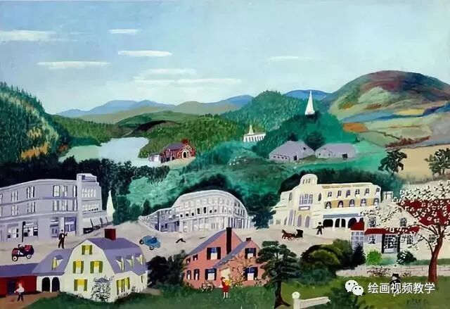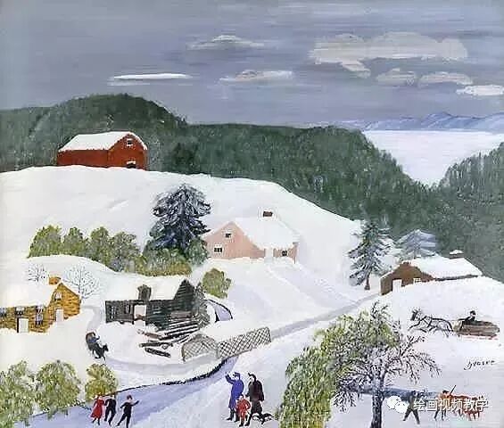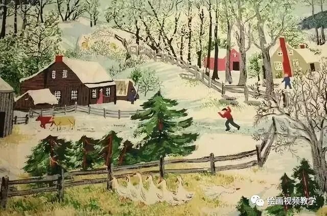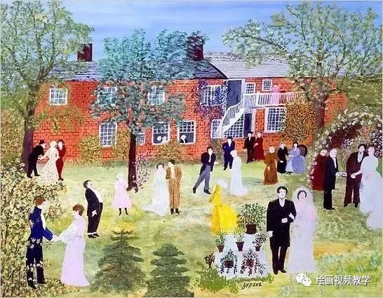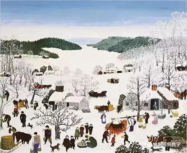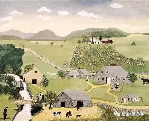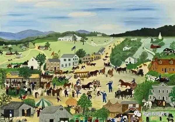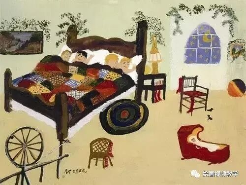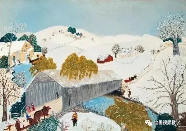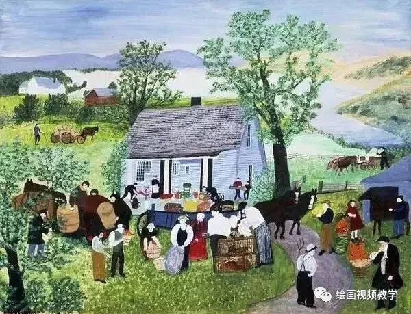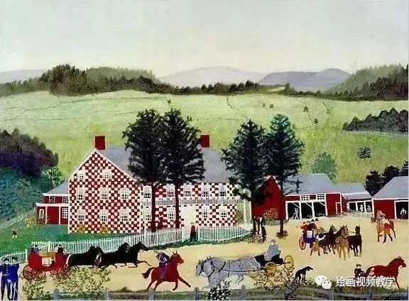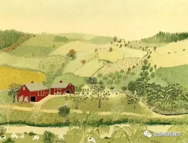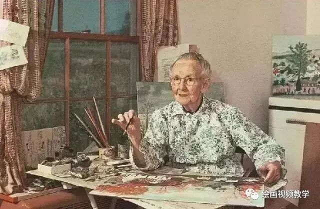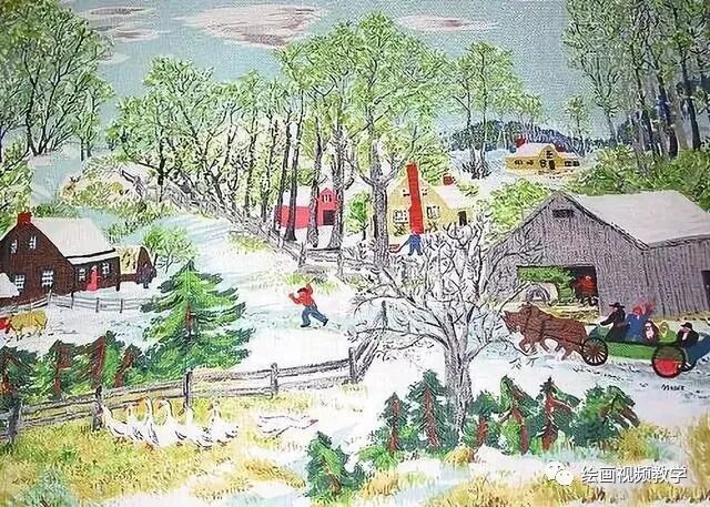 摩西奶奶说:我以刺绣为主业,后因关节炎不得不放弃刺绣,拿起画笔开始绘画。
