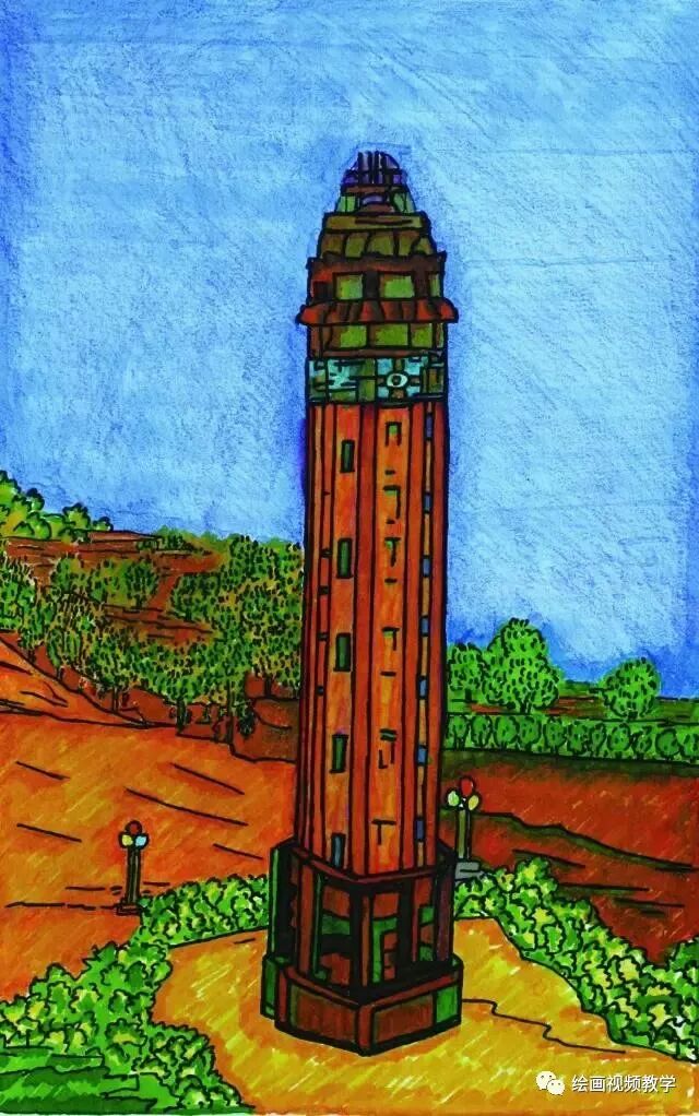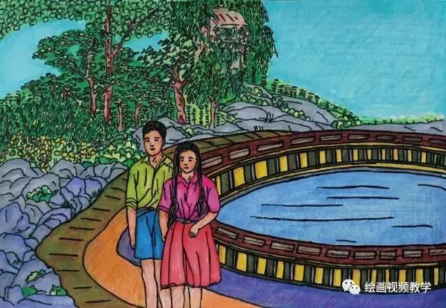 △ 花园坝 彩色水笔综合 37×28cm 2015