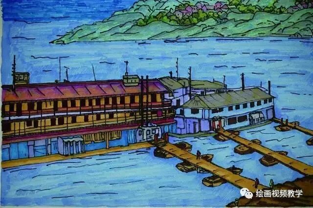 △朝天门码头 彩色水笔综合 37x28cm 2015