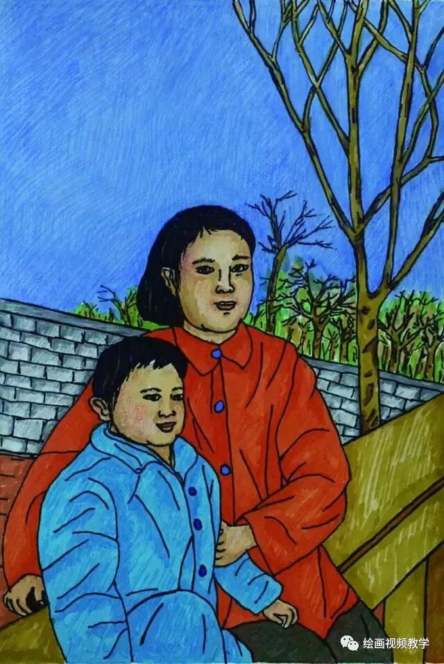 △华西三姐妹 彩色水笔综合 37x28cm 2015