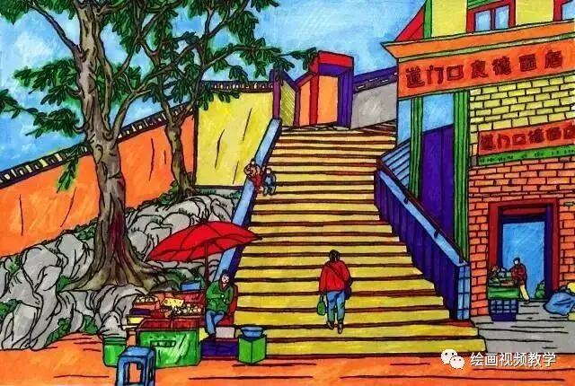 △ 道门口 彩色水笔综合 37×28cm 2015
