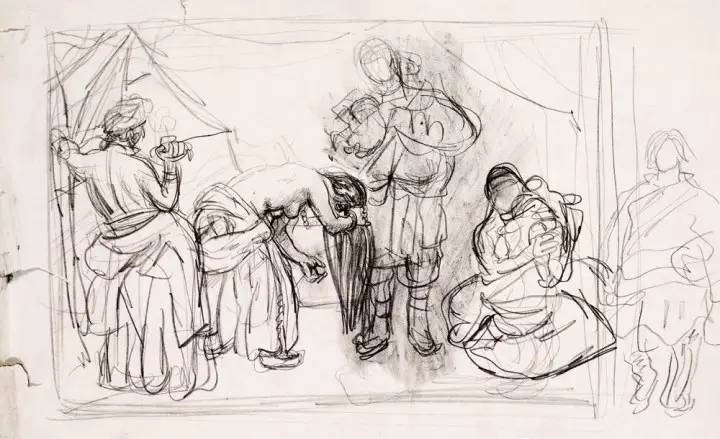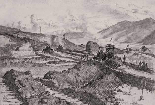 兰新铁路工地 1954 29.5×39.7 cm 速写 中国美术馆藏