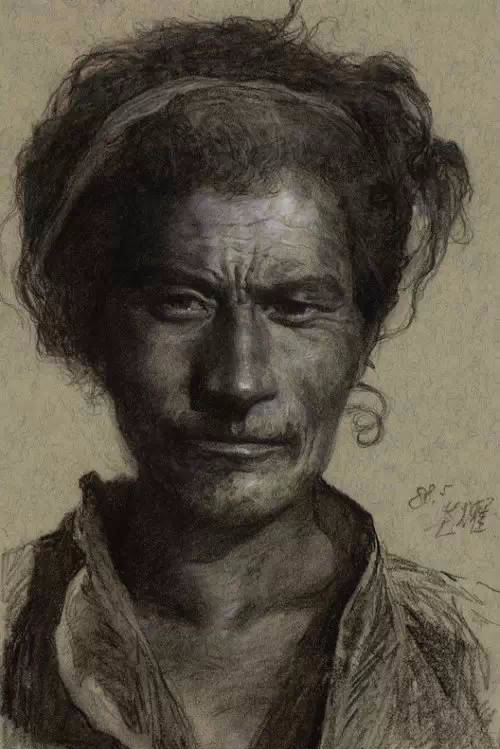藏族青年 1976 39.3×27.5 cm 素描 中国美术馆藏