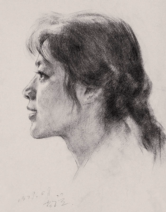 女青年侧面像 1984 54.5×39.5 cm 素描 中国美术馆藏