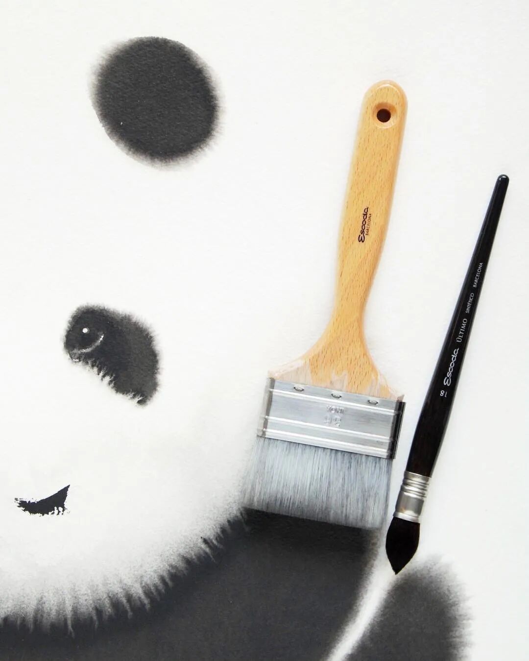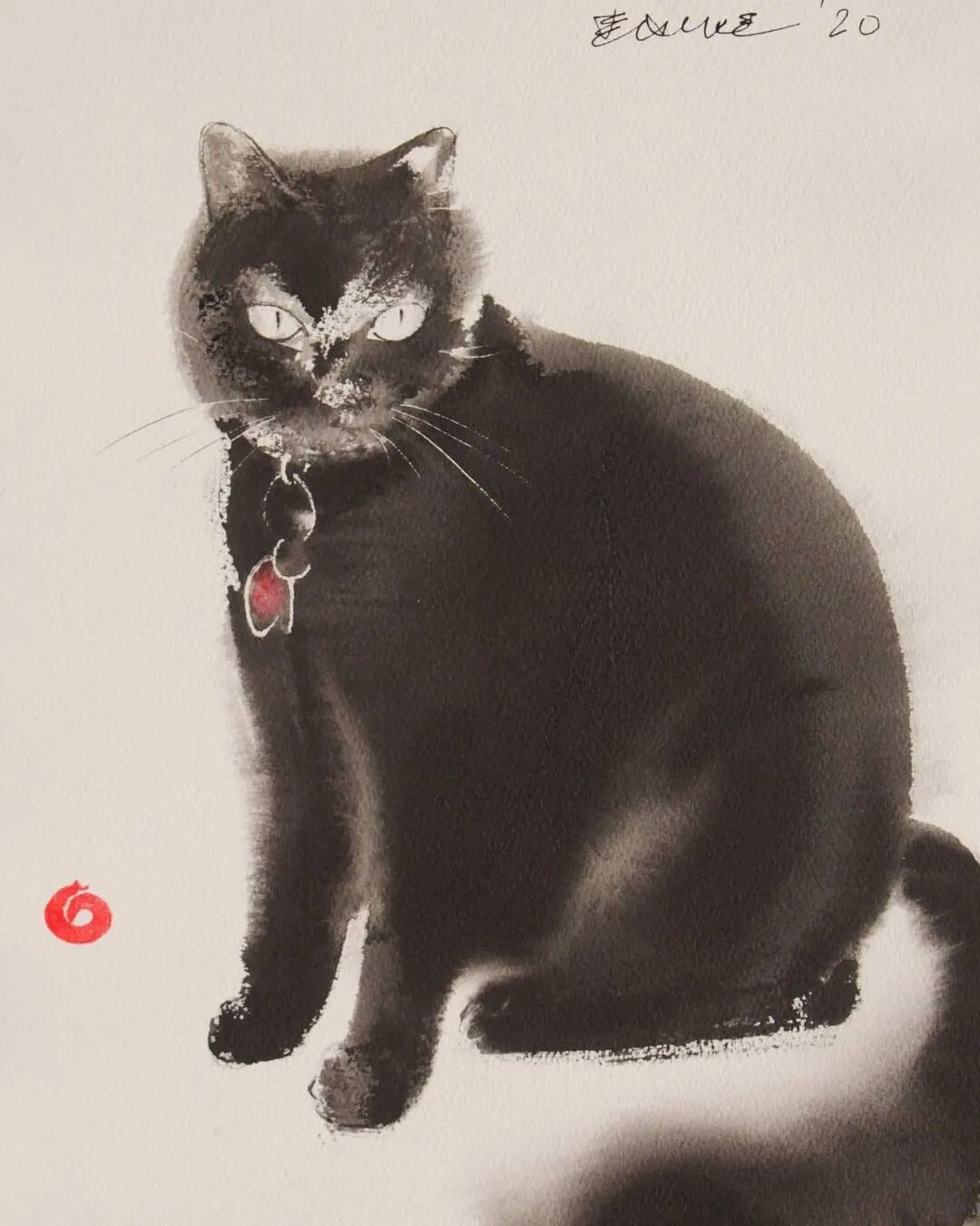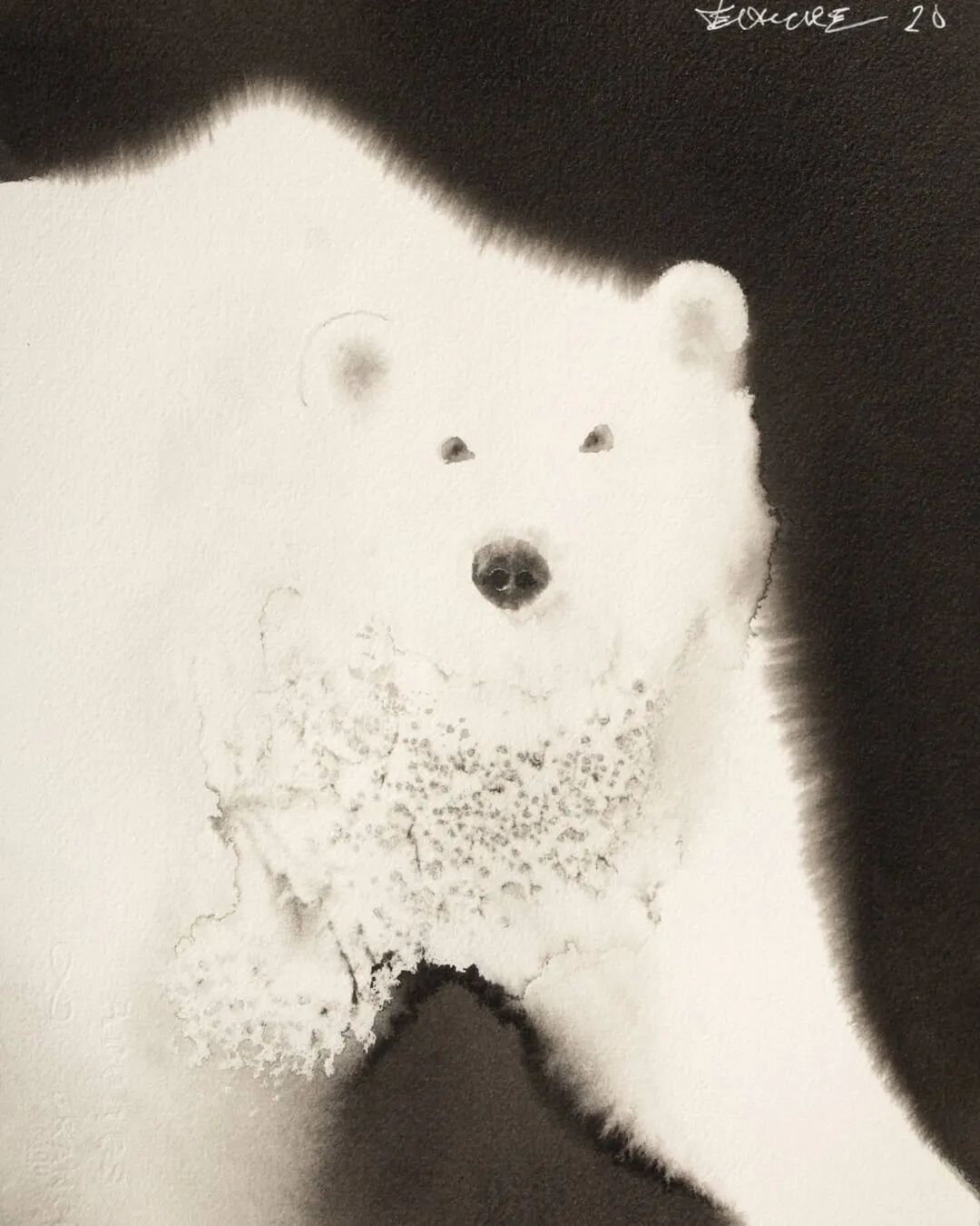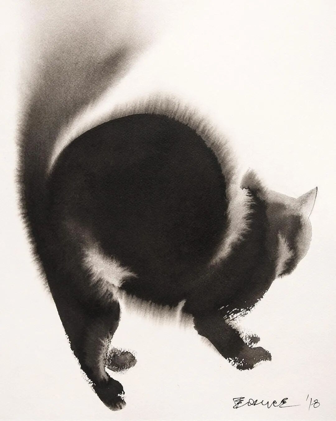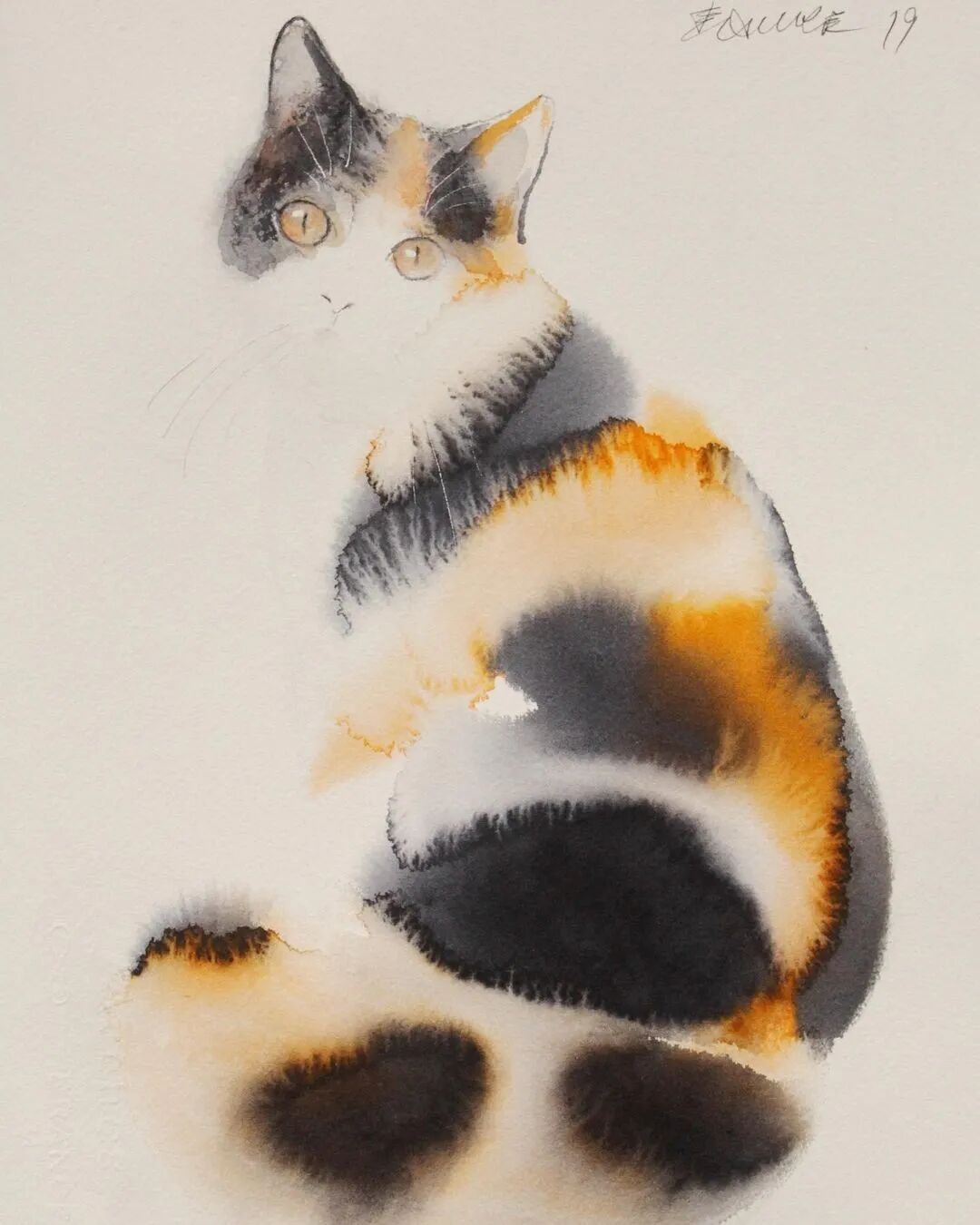 他运用了毛刷晕染出猫蓬松的毛发
