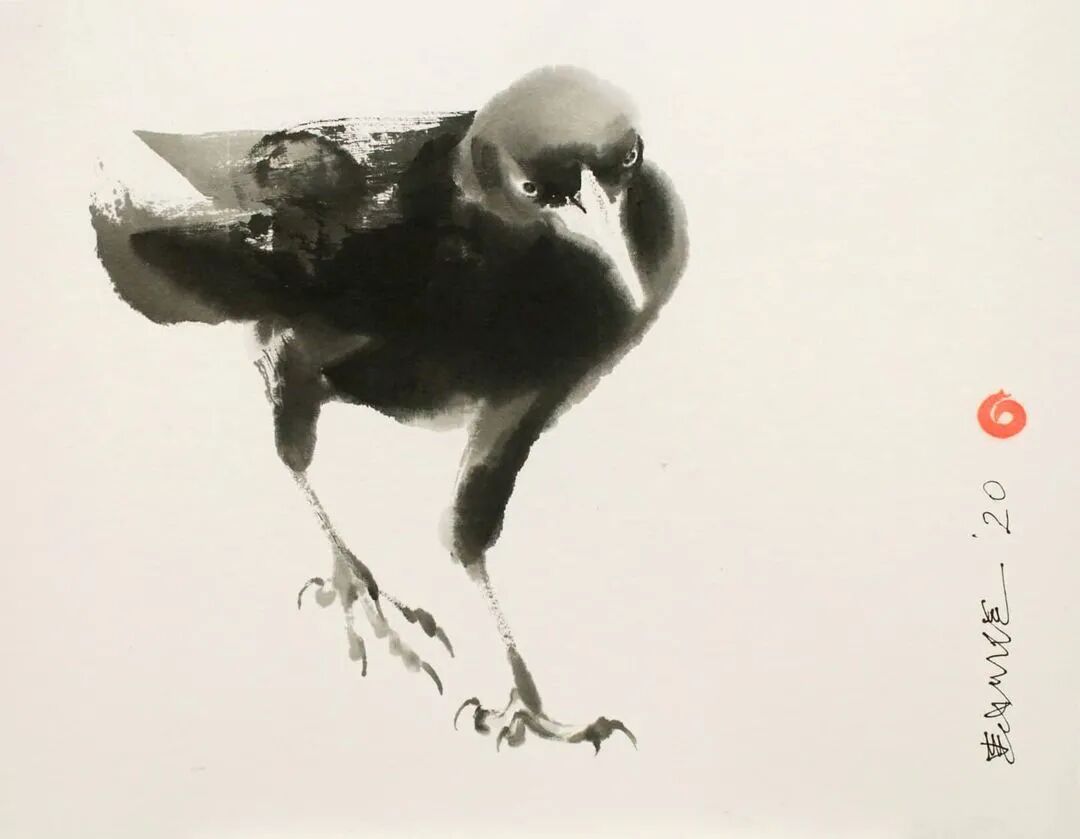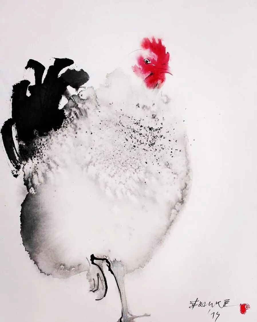 经过多年的练习,他在国画技法的运用上