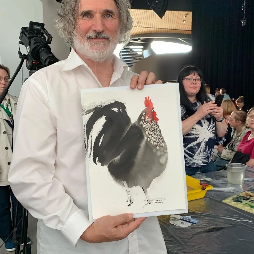 他得以参加了一场中国水墨画的画展