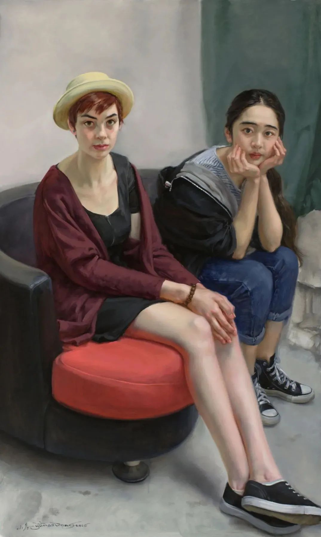 ▲《夏热瓦纳和她的狗》 2014年 90X150cm