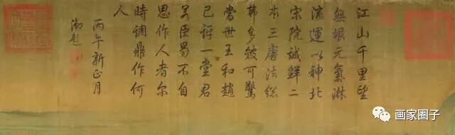 宋钦宗赵桓即位后,《千里江山图》被北宋内府收藏。