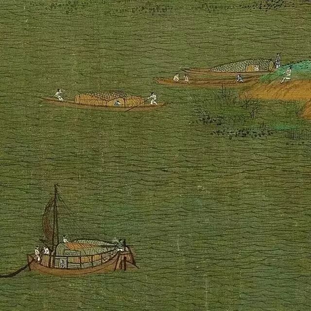 全卷从左至右大致可分为五段景色描绘,每段之间画家都以江面隔开,又以桥梁、游船、渔舟衔接或呼应。