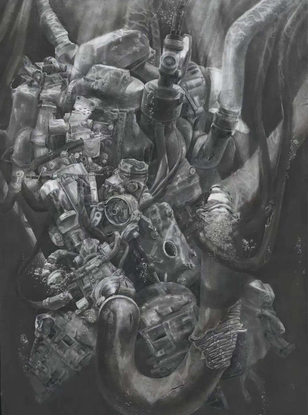 纸本炭笔、锡纸 2020年 指导教师:杨澄