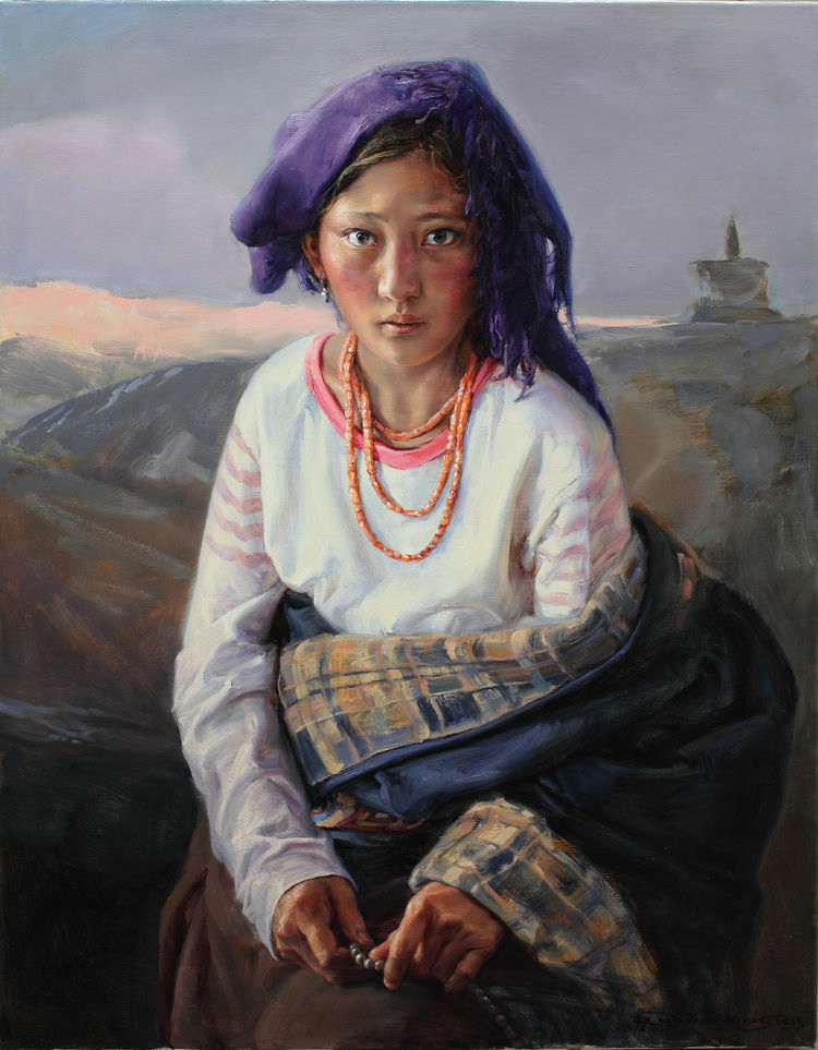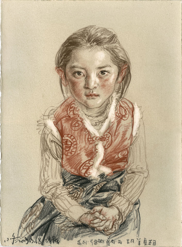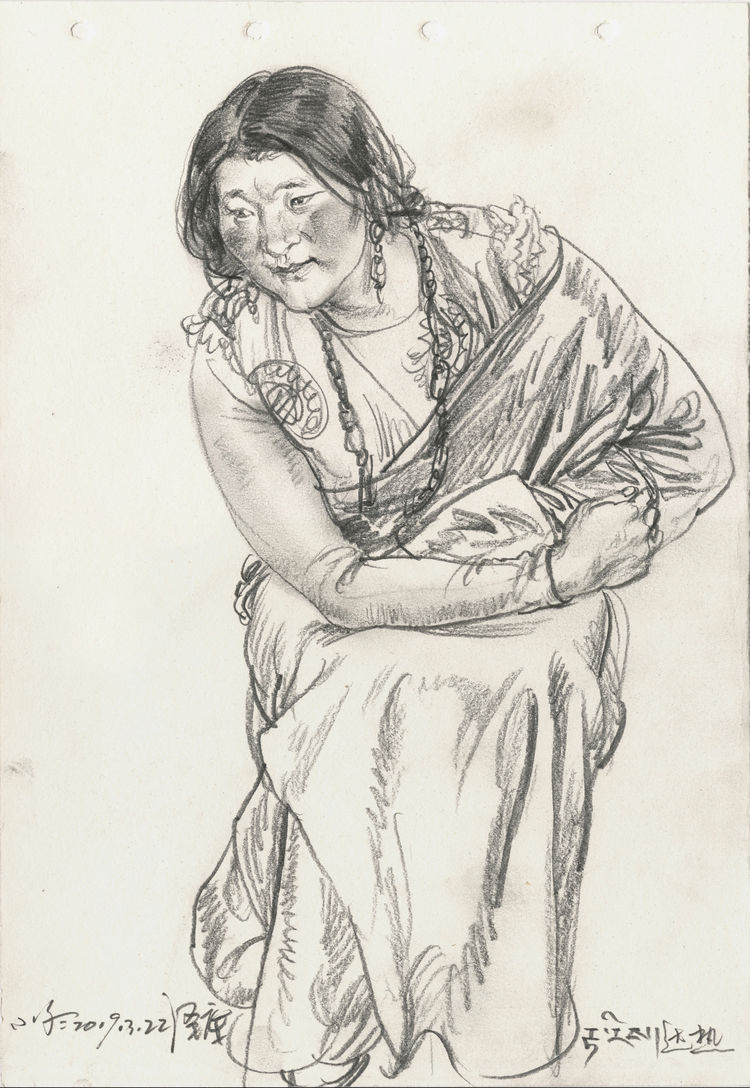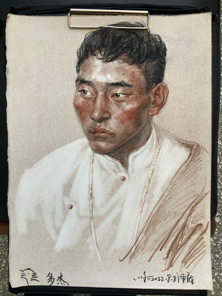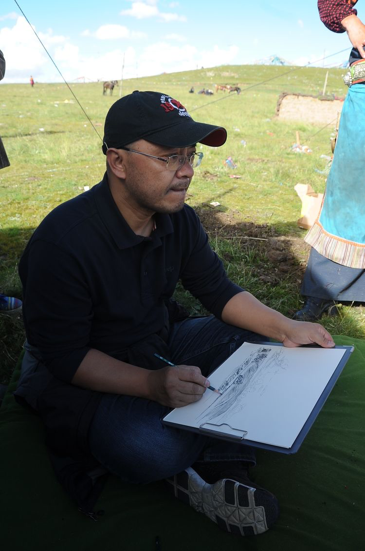 我最开始去泽库和一位老朋友有关,就是专画藏族题材的吴长江老师。吴老师画泽库已经39年了,2008年以后,我和吴老师相识熟悉成为好朋友,他就约我结伴一块儿画泽库。我非常的兴奋,以前我看到过不少吴老师和李晓林老师在泽库完成的写生作品,真是强烈震撼。泽库距离西宁仅有四五个小时的车程。从西宁出发,途经大城市到历史文化积淀厚重的黄南州农区,穿过麦秀林区到达泽库就是典型的牧区。体会到不同的地貌变化海拔落差和多样的生活形态,具备了这些条件,泽库成为最理想的写生地点。”