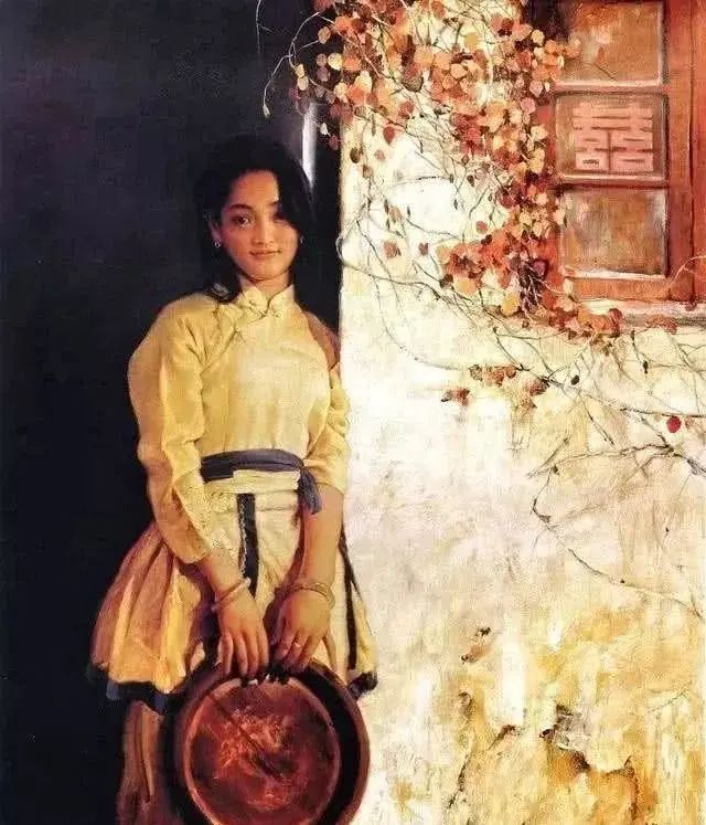 在油画作品中的周迅,稍有点婴儿肥,眼神里满是清澈,一脸的稚嫩,少女之美扑面而来。
