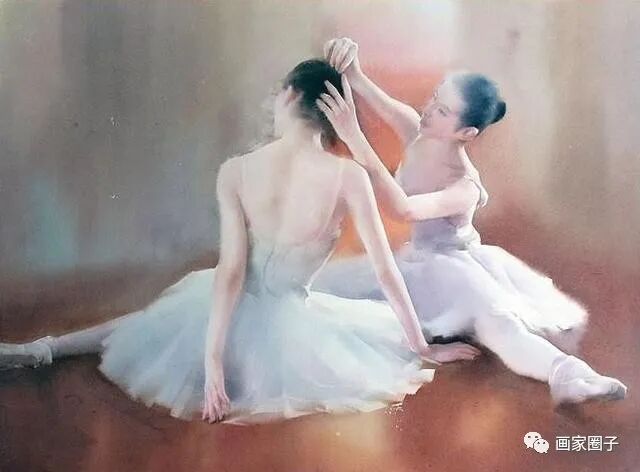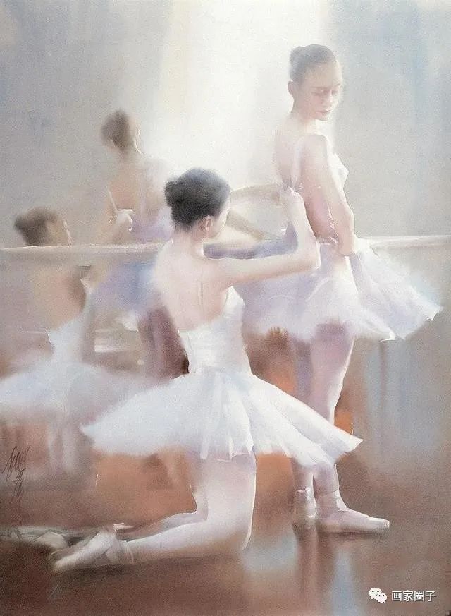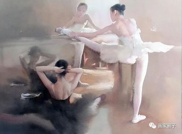 一提到芭蕾少女,很多人就会想到当代中国水彩画坛实力派画家柳毅先生。他的芭蕾舞者系列主题,用水彩捕捉女孩随意轻松时刻的情绪和气氛。
