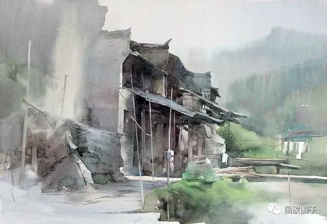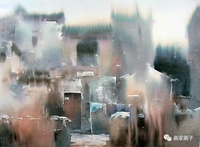 欣赏柳毅的水彩画时,就会油然产生一种“桃花流水窅然去,别有天地非人间”的幻觉。