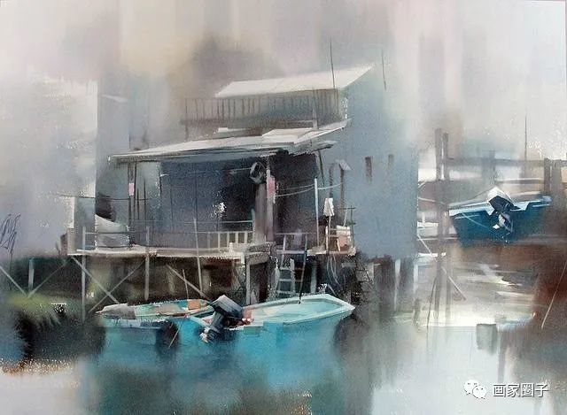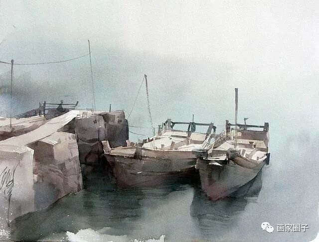 他的作品空濛秀逸,清新洒脱,水分运用控制极佳。画面上虚实结合、韵味极佳,有种意犹未尽又含蓄的美。