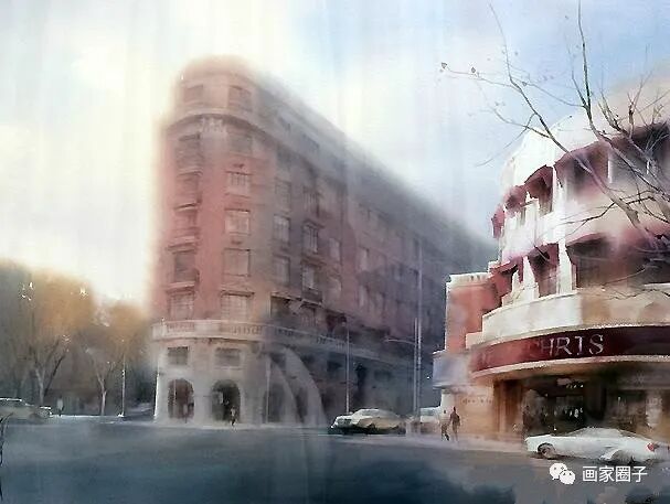 画水彩画的时候一定要注意水彩画的绘画步骤,很多初学者直接用水彩颜料画画是不对的,因为水彩画是水彩颜料和媒介水的结合使用,不加水或者加水量少,直接画画画面不透明,但是如果水份过量颜色也容易降低纯度变得“脏”,变得“灰”,失去了画面的色彩效果。正确的步骤应该是第一遍颜色少水份大,之后水份越来越少,颜色越来越多。