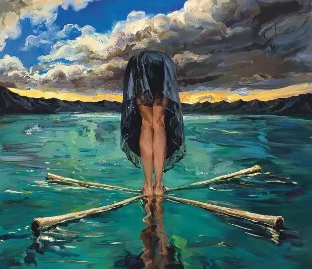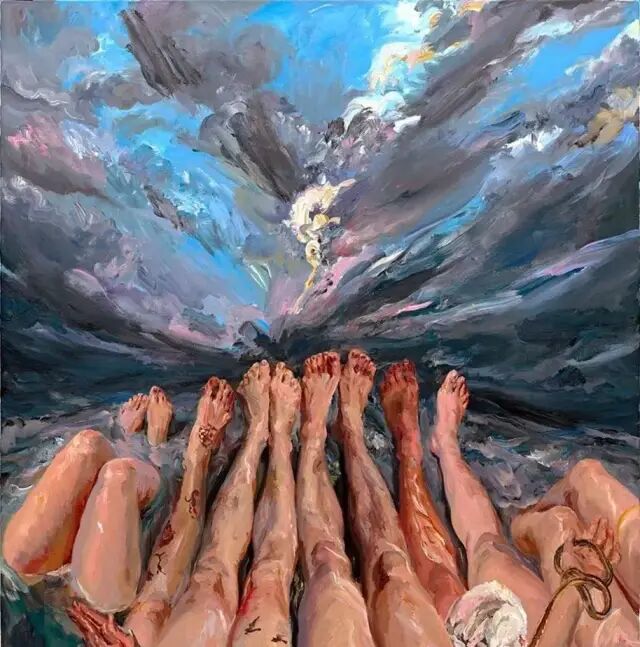 她取材大多是关于生活的场景、人生的短暂、人性的弱点等。自己亲眼目睹一切去创作。比如:这幅《目击成长》取材她和小女儿作为两代人的成长背景,孩子就像艺术家面前的白纸。画面前几乎不可能知道最终的结果,父母也不可能决定孩子将来成为什么样的人。