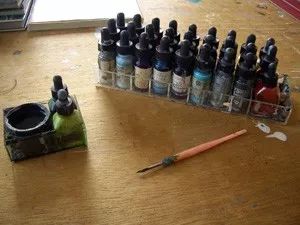 灌注或蘸取有颜色的墨水绘制而成