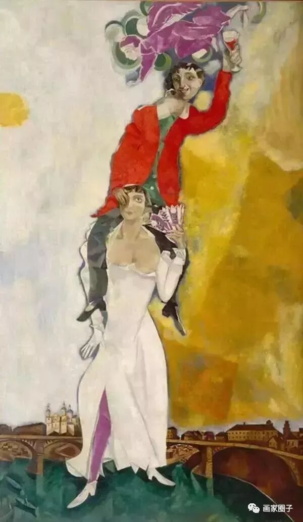 这是夏加尔1918年的作品。时值苏维埃政权建立的第二年,国家层面上是战争贫困和死亡,你这里只画男欢女爱这一套,怎么能被无产阶级政权所待见。