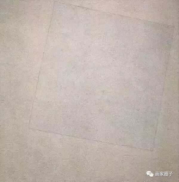 这是现代艺术名作:白上白。1918年。作者是马列维奇,他在白画布上用线画了个倾斜的方框,这东西怎么能让新兴的苏维埃政权接受?但他没有离开苏联,后来默默无闻的死去。