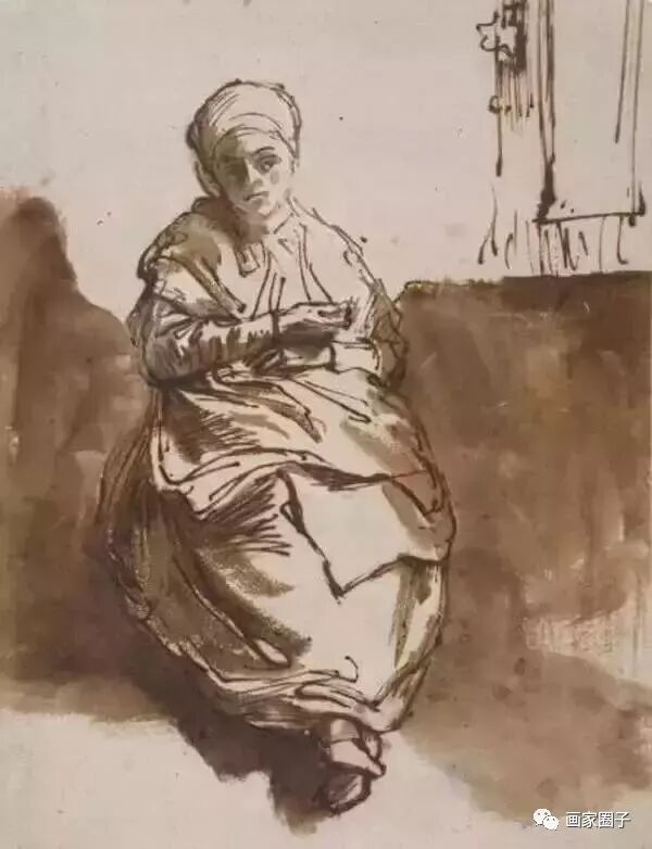 伦勃朗,是明暗光影大师。但他的素描,是以线为主的。