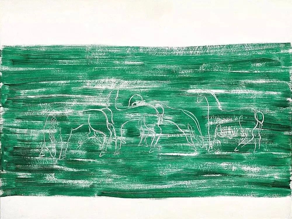 常玉有一副名作叫《黑马、白马》,背面是《豹》。他在豹子的前蹄子处写了一行字:“此画经两个时代方成,起画在1930年黑马当成白马未就成全。成就在1945年,在这个时代我爱恋一少妇,因她而成此画,这幅画已属于她后绝离。此画仍为此,玉记。”50岁的时候,常玉和他的19岁的德国女模特同居,但不久就分手了。