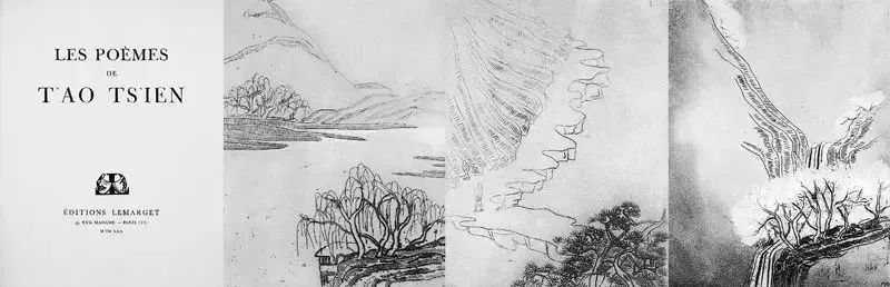 《陶潜诗选》之封面及常玉所制作三幅铜版画插画。勒马盖出版社,巴黎,1930年。