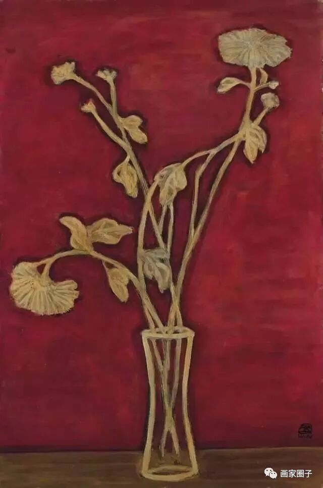 他的静物作品就像他内心世界的一面镜子,画中的花朵大都孤单无力,残花败韵、强撑姿色,像失去母亲的孩子般孤单寥寂,无依无靠,有种“残月伴秋寒,冷冷清清”的凄凉感。