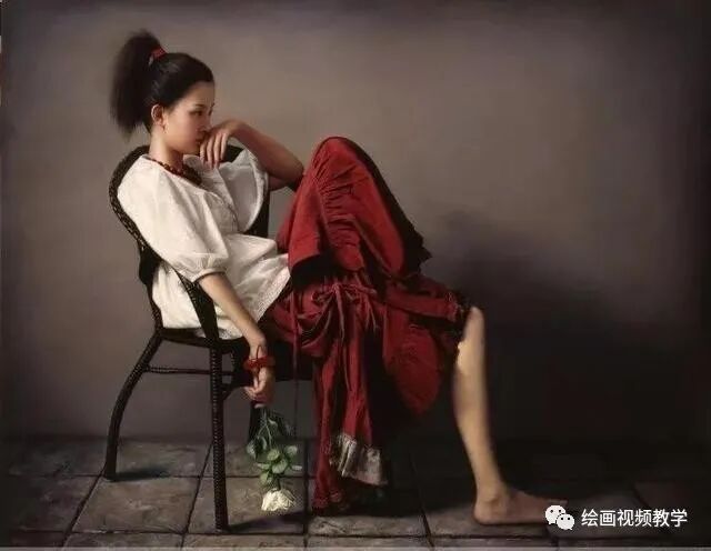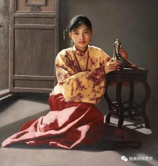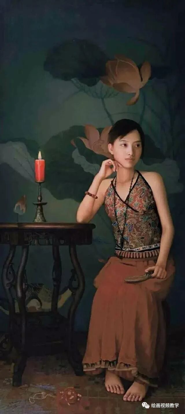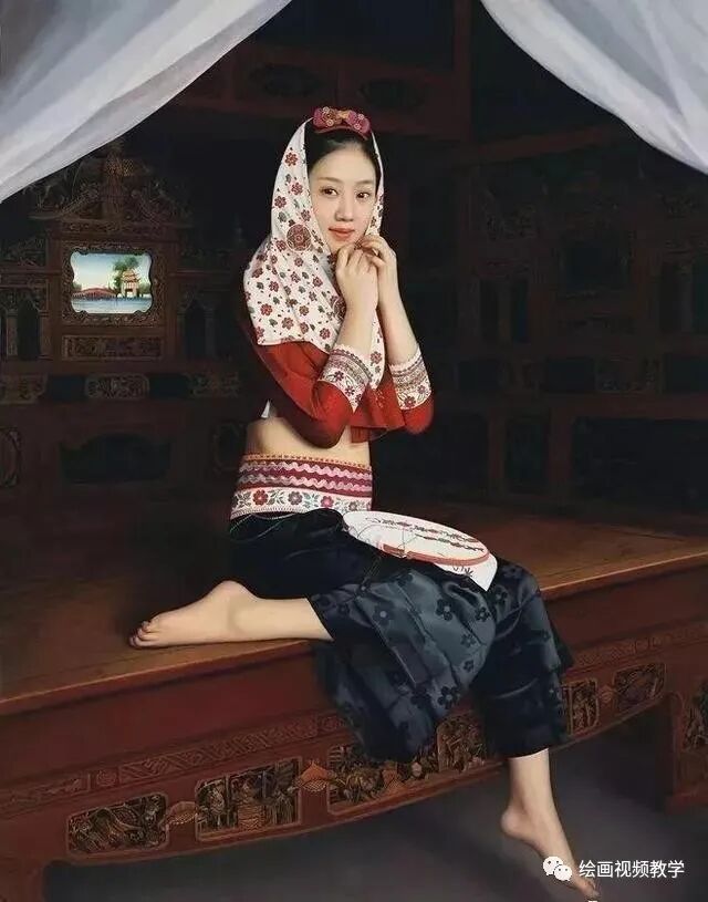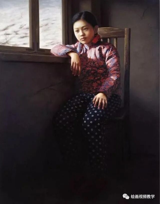 画面中那美丽的惠安女子一如既往作品中恬静柔美的女性形象,给人以平和舒畅之感。画面中这个水灵的女孩上身穿绣花襟衫,下身着阔大的黑裤,具有很强的色彩感染力。