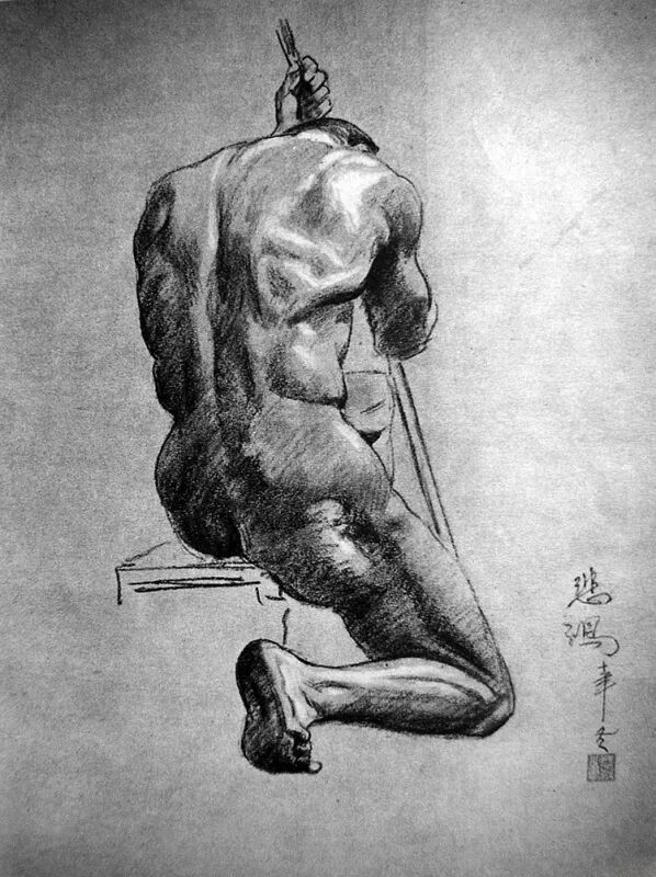 徐悲鸿被尊称为中国现代美术教育的奠基者,他主张发展“传统中国画”的改良,立足中国现代写实主义美术,提出了近代国画之颓废背景下的《中国画改良论》。
