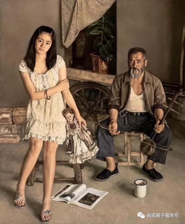 爷爷 孙女/180cm×150cm/布面油画/2011年