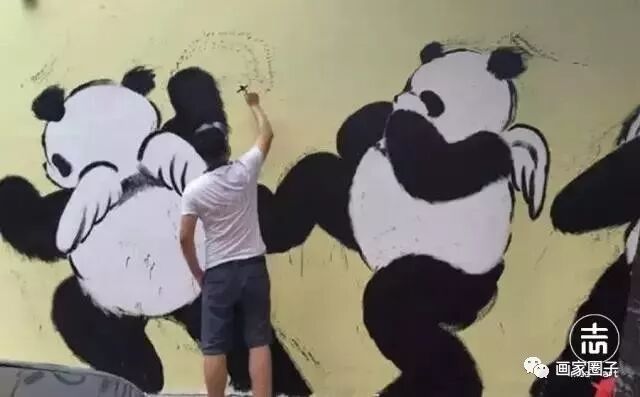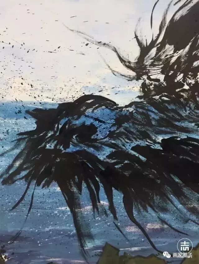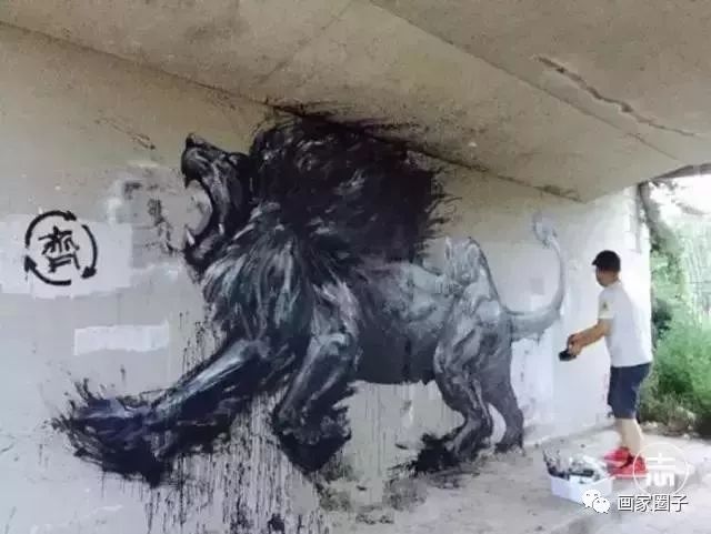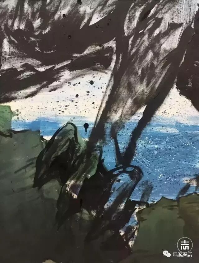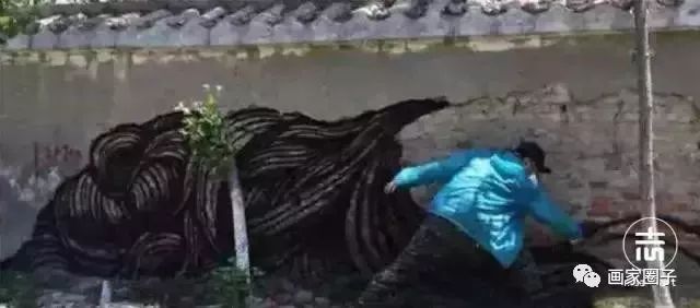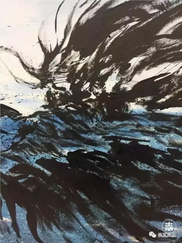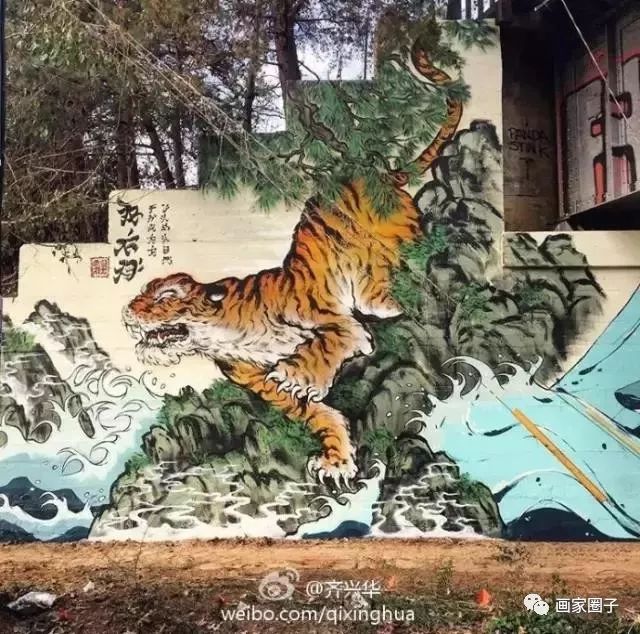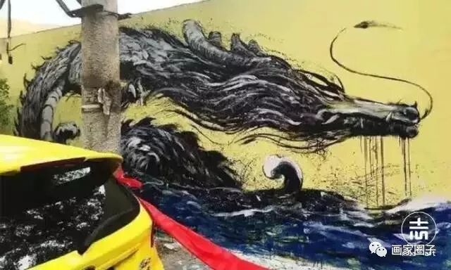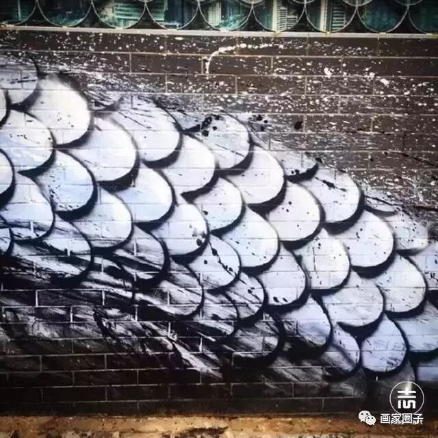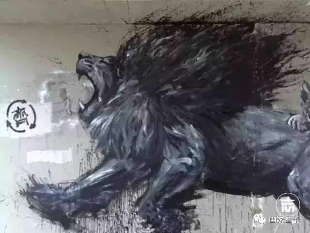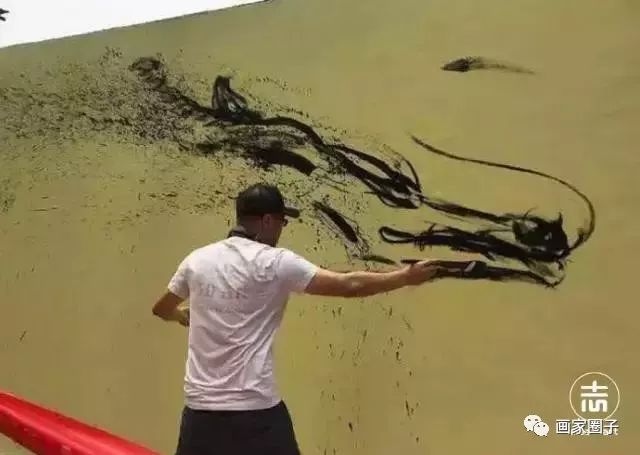 只是用了板刷和颜料,我喜欢这种水墨墙溅、一气呵成的感觉