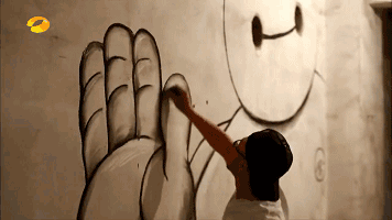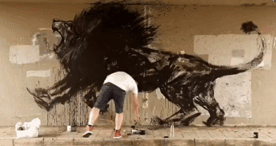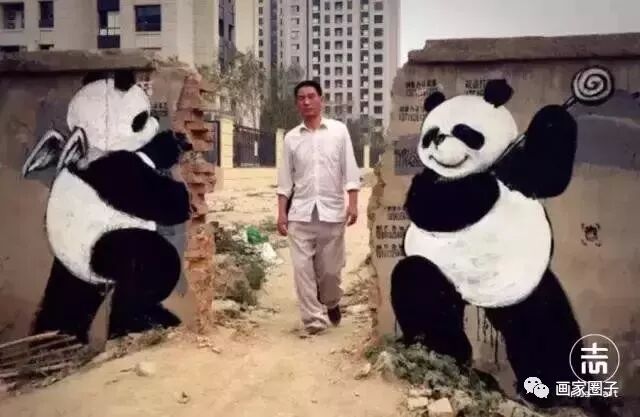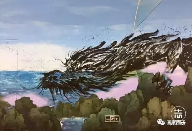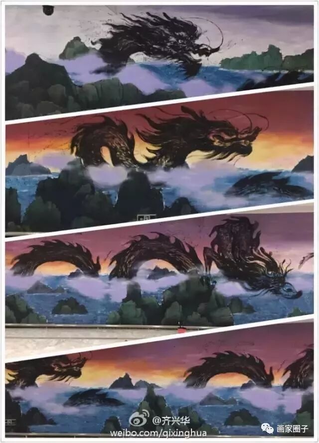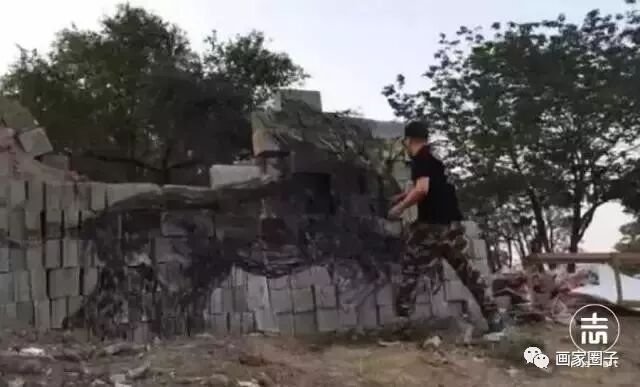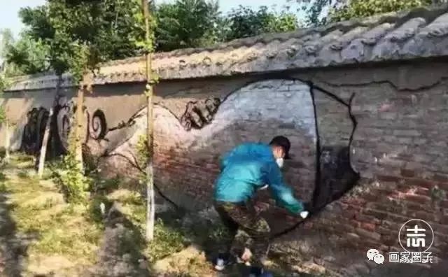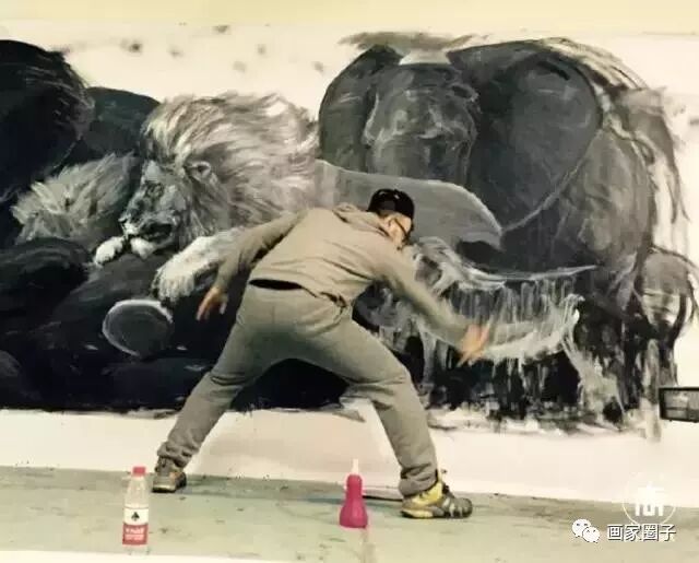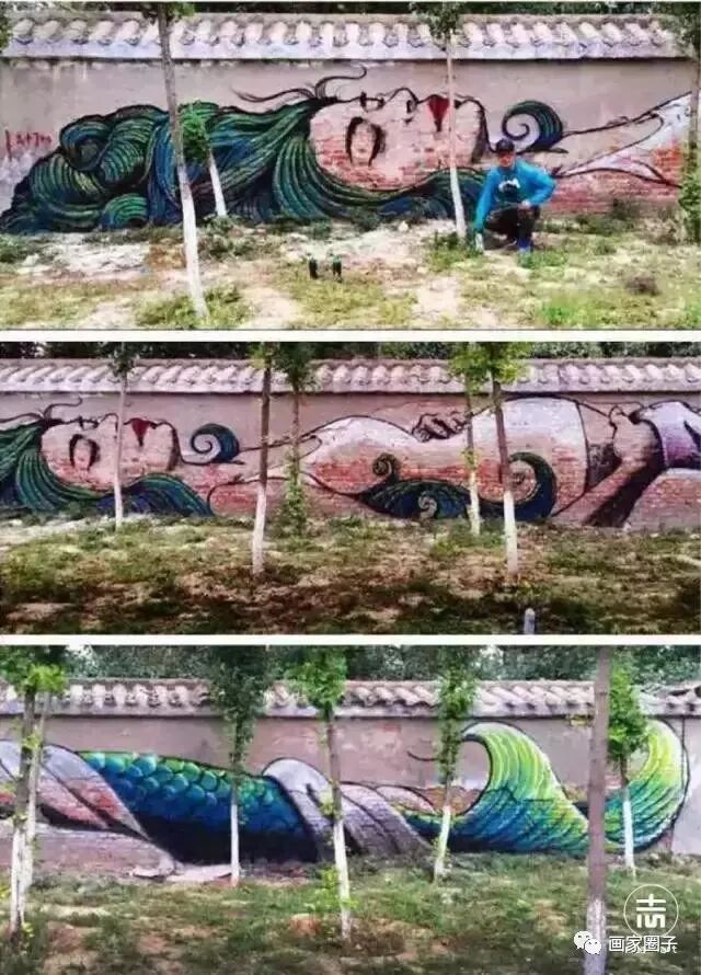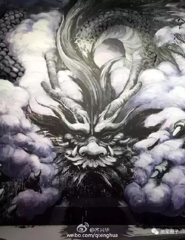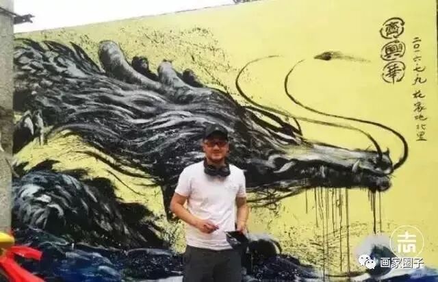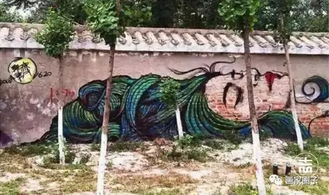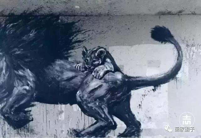 只是用了板刷和颜料,我喜欢这种水墨墙溅、一气呵成的感觉