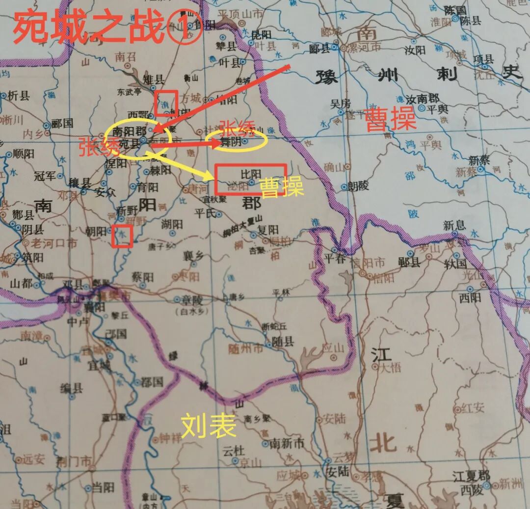 曹操收拢溃兵,退守舞阴(河南泌阳县)。张绣领骑兵追来,被曹操击败,张绣退回穰县(邓州),又与刘表联合。