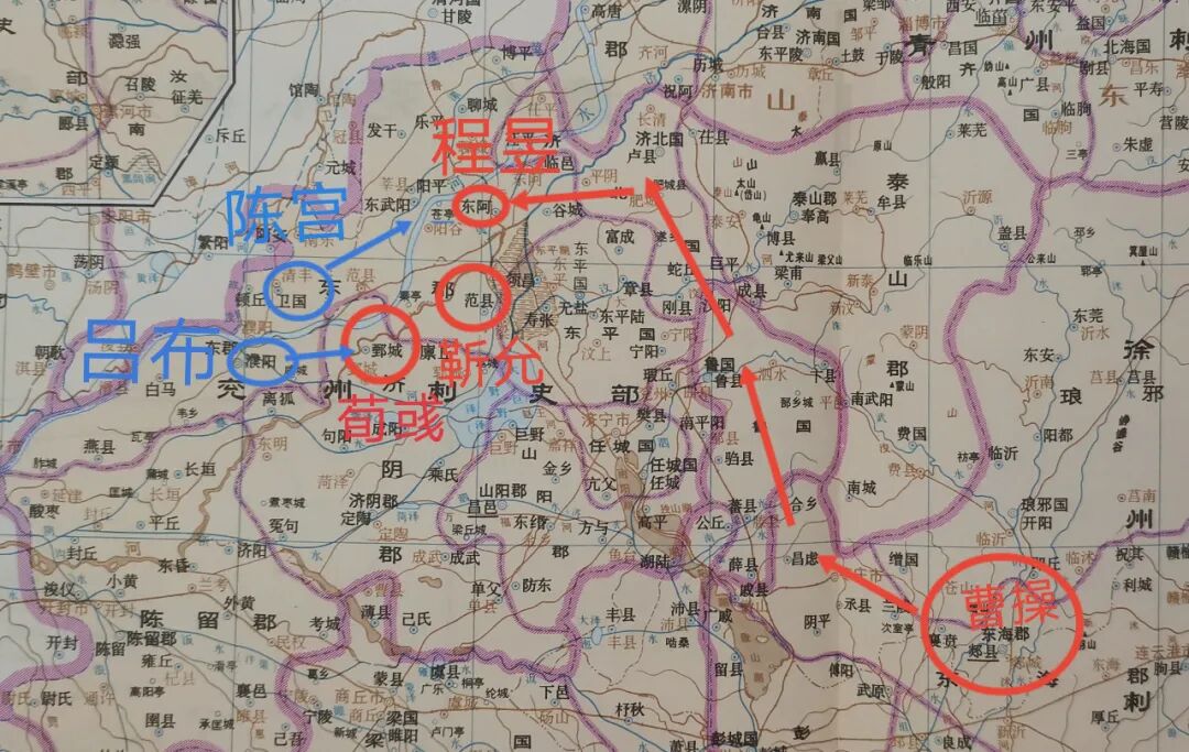 但后来我又对照地图仔细推敲了一遍,结合程昱和曹操的前后表现,我更正观点,靳允应是被迫站队曹操阵营的。