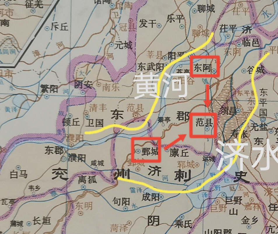 三个城池处于黄河和济水之间的狭长地带中,范县正好包夹在中间孤立无援。不管从战略位置上讲还是从力量配置上讲,范县都必须倒向曹操。