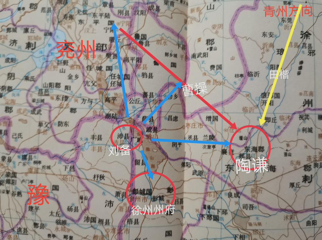 唇亡齿寒,眼见陶谦快要崩了,青州的田楷、刘备赶紧率军支援,陶谦将刘备安排在小沛。