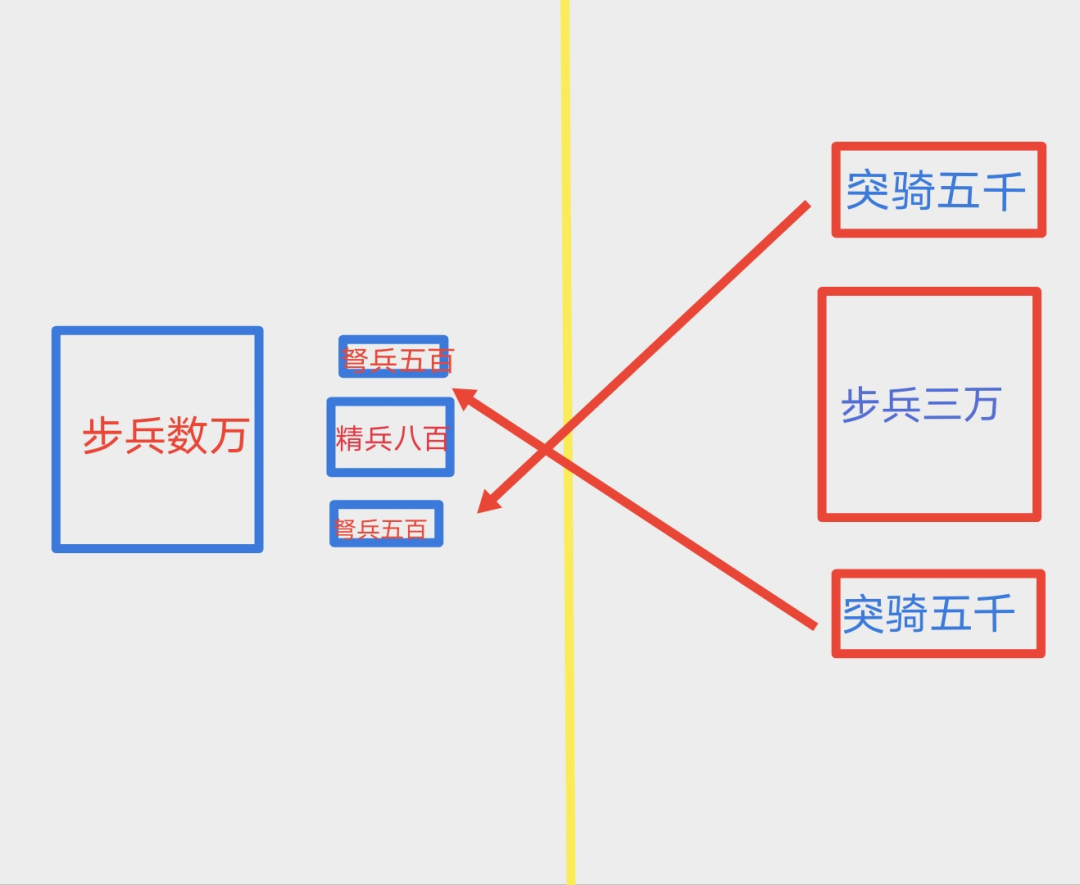 这个时候重步兵再冲入阵中利用装备优势进行疯狂输出,在阵中被斩杀的严纲可能是骑兵总指挥,突然被斩杀了中枢将领,剩下的骑兵就进入了无序状态。