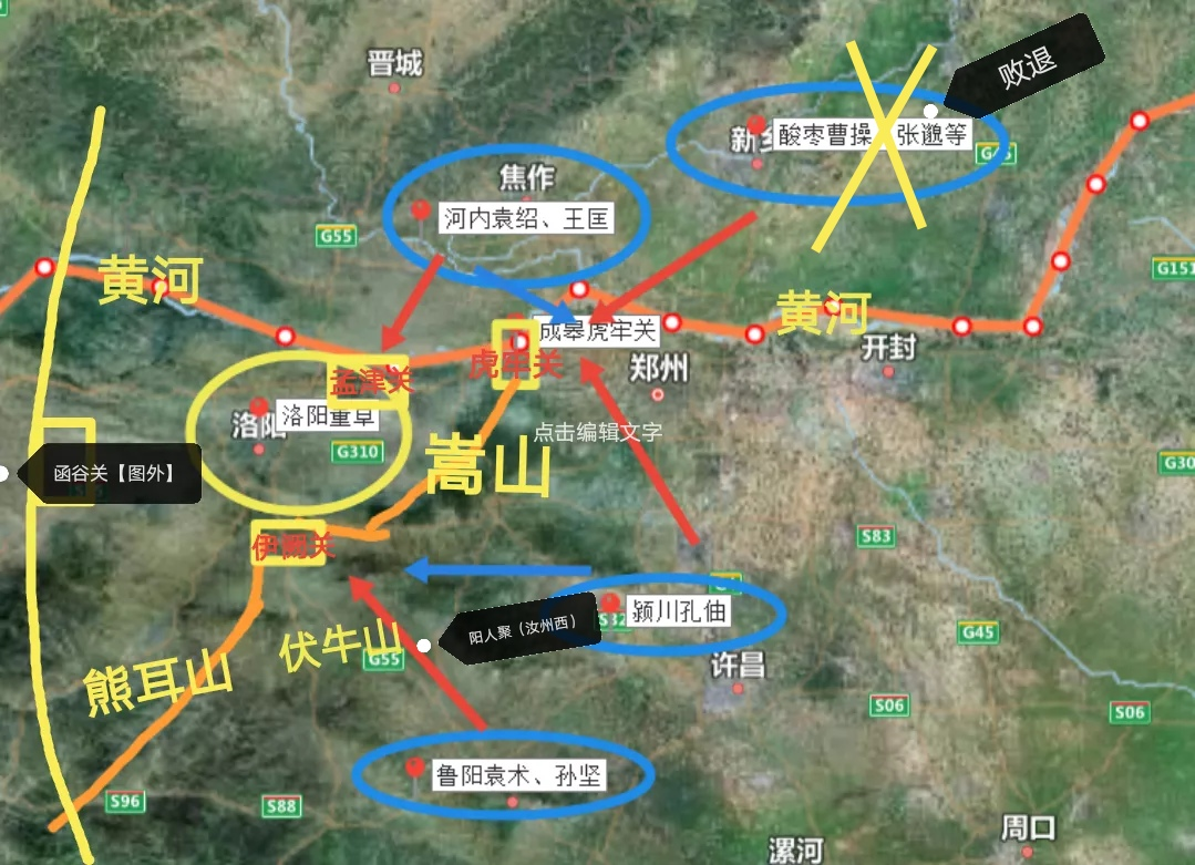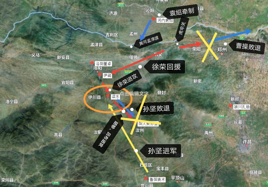 东方不亮南边亮,趁着董卓的部队都在虎牢关、孟津渡防守袁绍、曹操时,南阳袁术派孙坚从伊阙方向向董卓发起进攻: