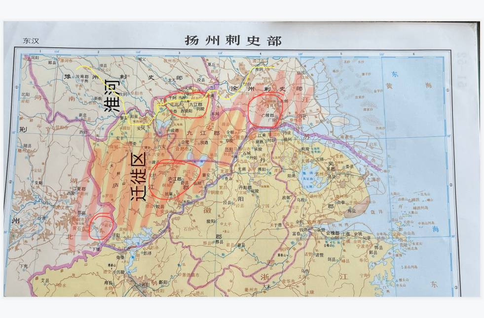 既而民转相惊,自庐江、九江、蕲春、广陵,户十馀万皆东流江,江西遂虚,合淝以南,惟有皖城。