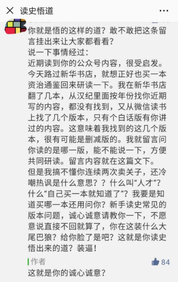 如果读者说的有道理,那就证明我没水平,我还有什么尊严?如果读者说的没道理,那就是读者没水平,我还去跟他讨论,又显得我说话不挑人,没格局。反正,怎么做这件事对我都没好处。大家引以为戒。